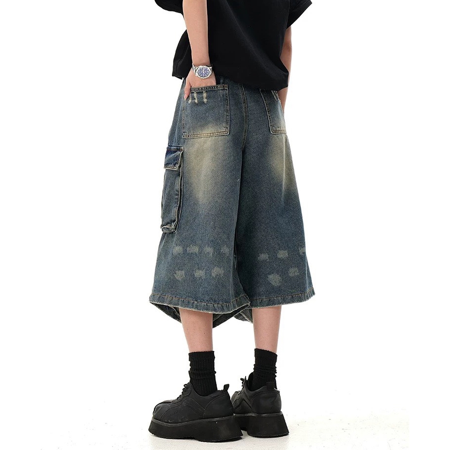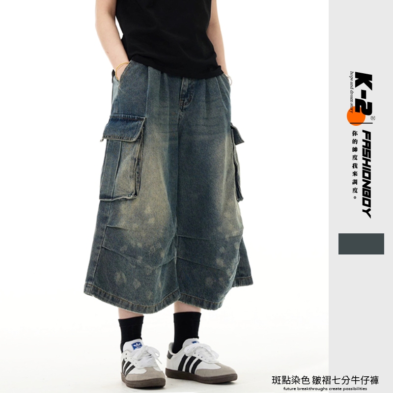 【K-2】 特殊斑點渲染 復古刷色 水洗 牛仔七分褲 七分褲 髒髒風 工作褲 牛仔短褲 工裝短褲 短褲【JK8706】M|L|XL|XXLK-2 Fashionboy