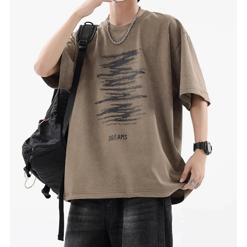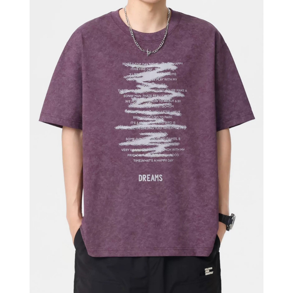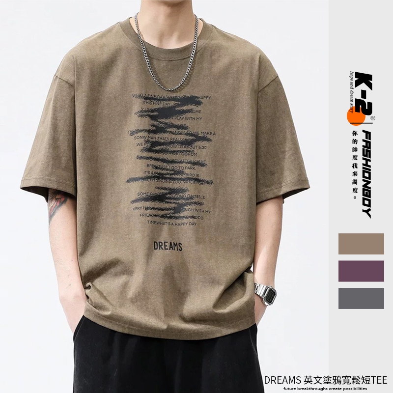 【K-2】DREAMS 英文塗鴉 美式休閒 落肩 寬鬆 純棉短T 短袖 上衣 復古 Y2K上衣 短T K2【JC477】卡其色,M|卡其色,L|卡其色,XL|深灰色,M|深灰色,L|深灰色,XL|紫色,M|紫色,L|紫色,XLT-ShirtsK-2 Fashionboy