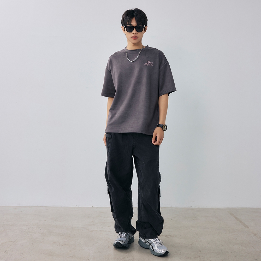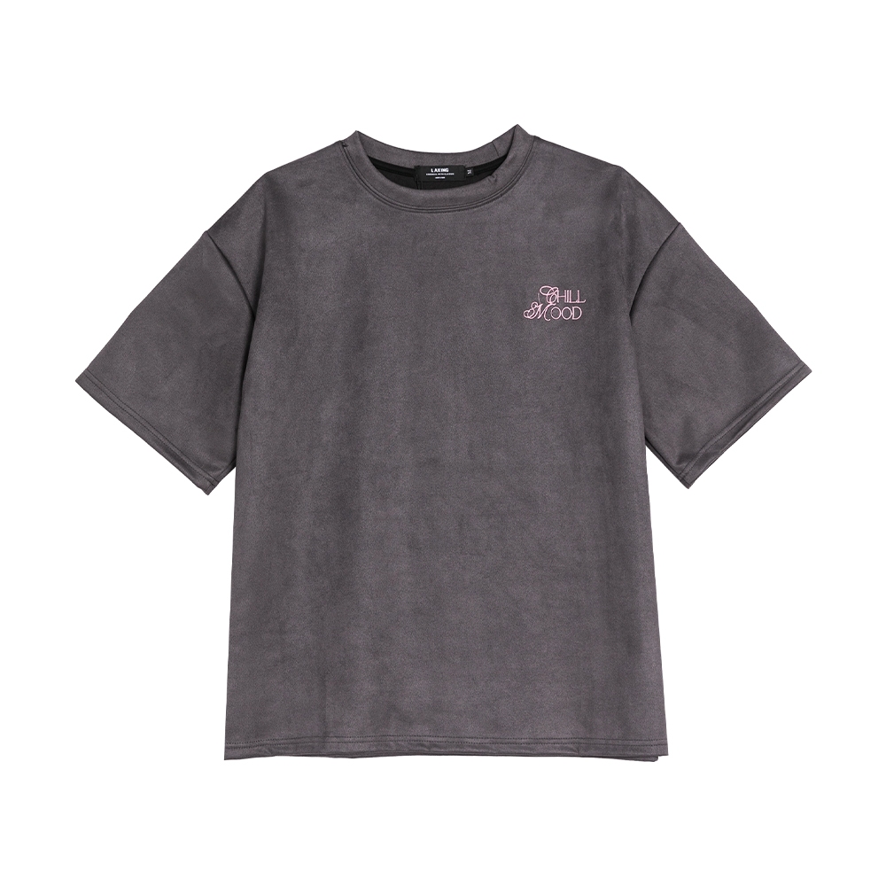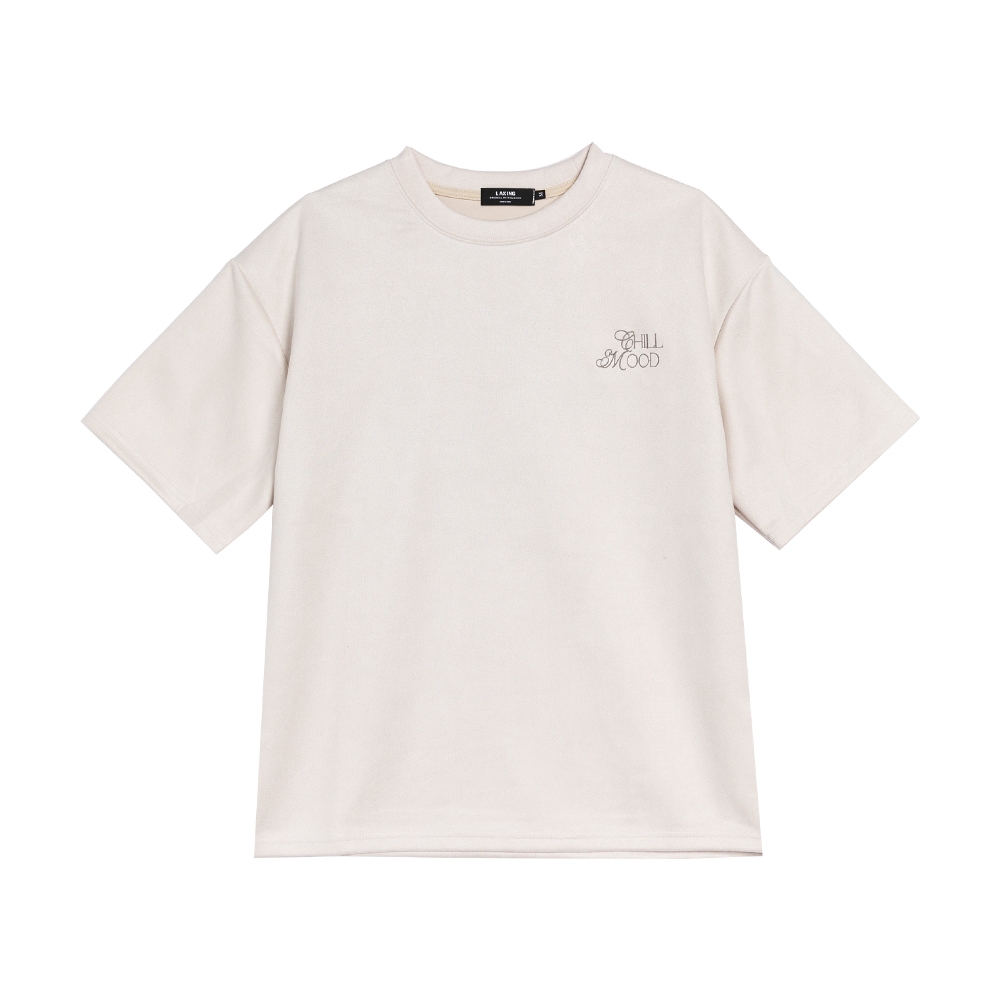 LAKING-歌德麂皮英文繡字短T灰色,M|灰色,L|灰色,XL|杏色,M|杏色,L|杏色,XLT-ShirtsLAKING官方旗艦店