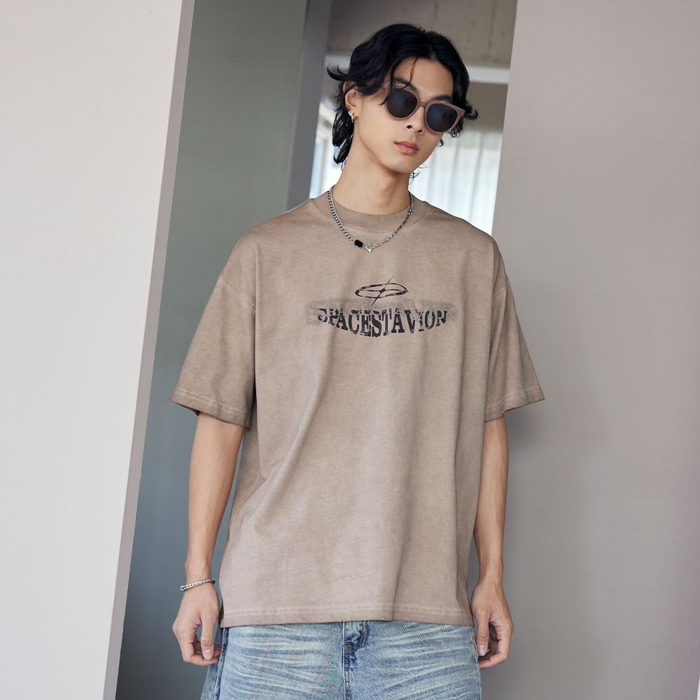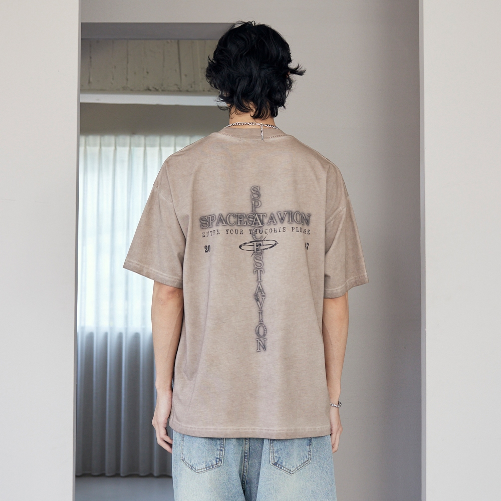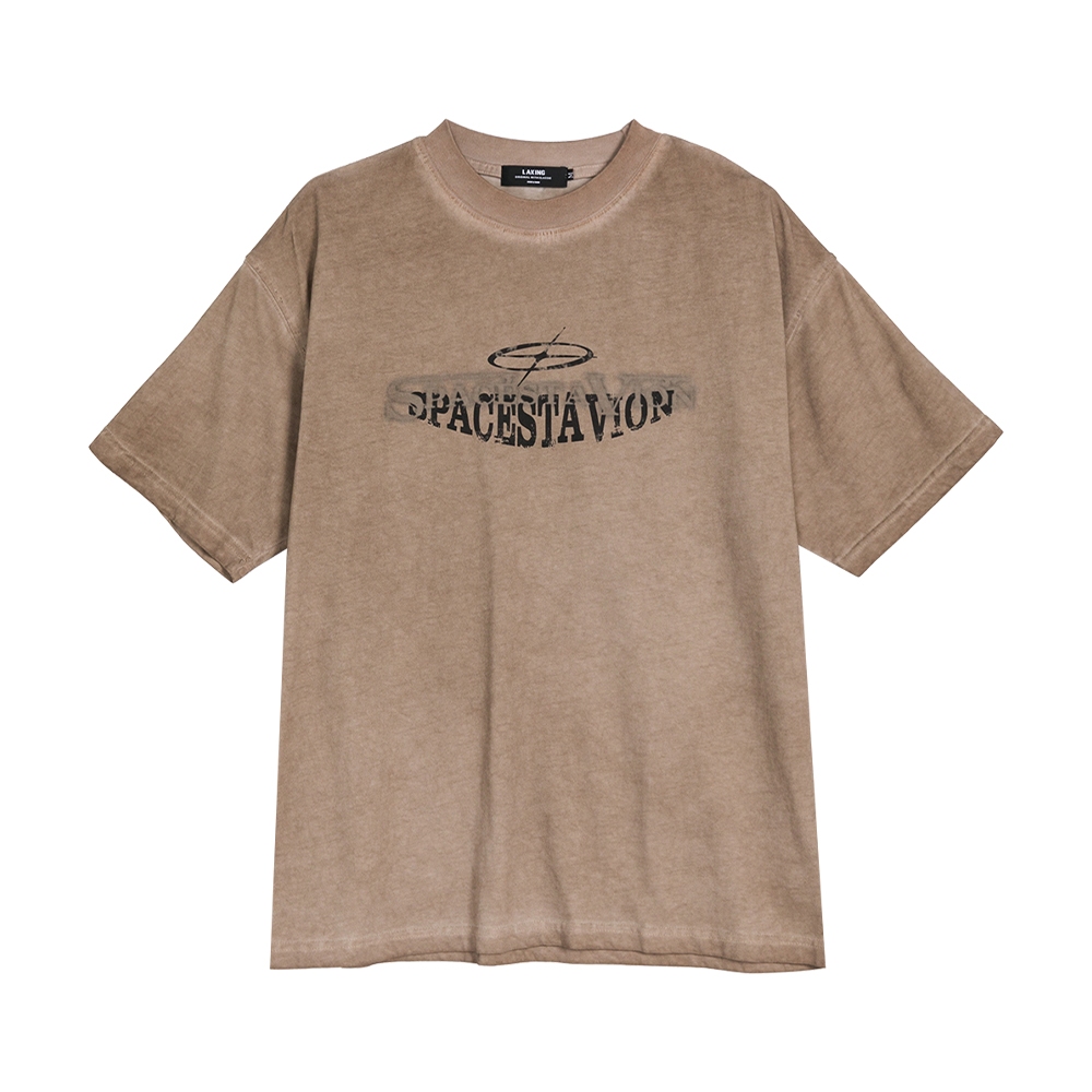 LAKING-美式英文十字排版水洗短T黑色,XL|咖啡色,M|咖啡色,L|咖啡色,XL|黑色,M|黑色,LT-ShirtsLAKING官方旗艦店