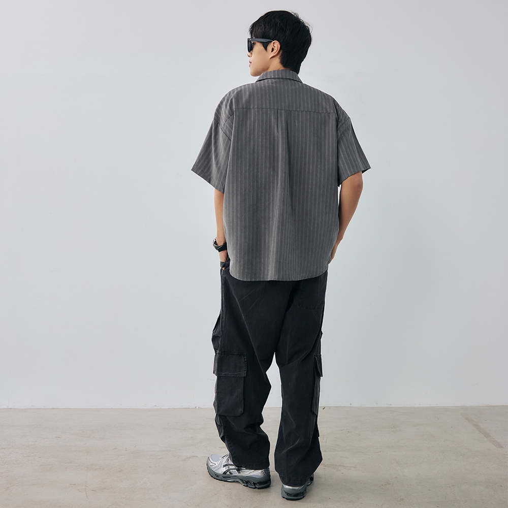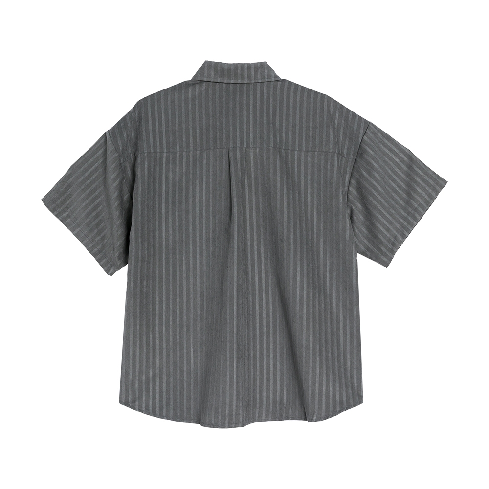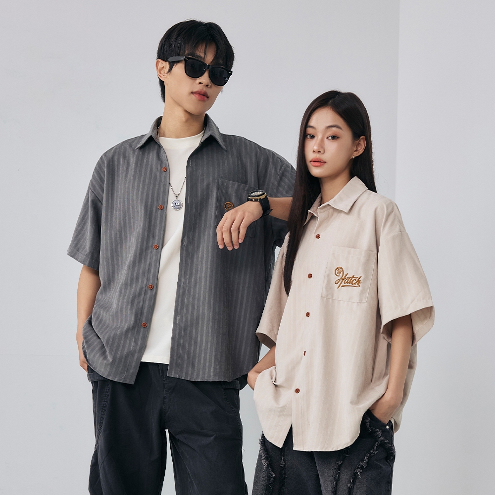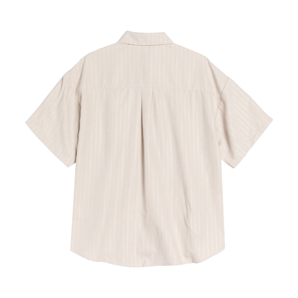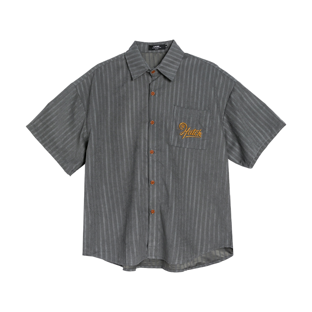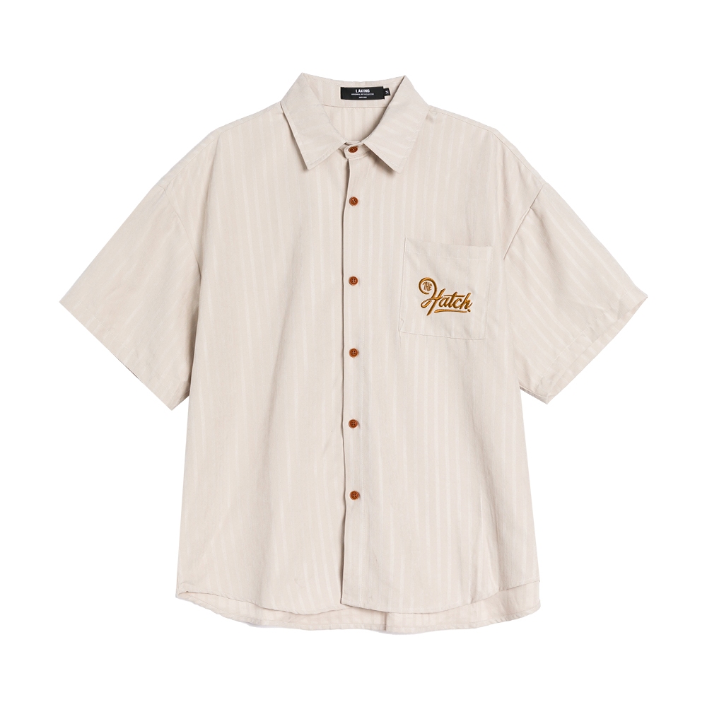 LAKING-質感口袋繡字直紋短襯灰色,M|灰色,L|米色,M|米色,LShirtsLAKING官方旗艦店
