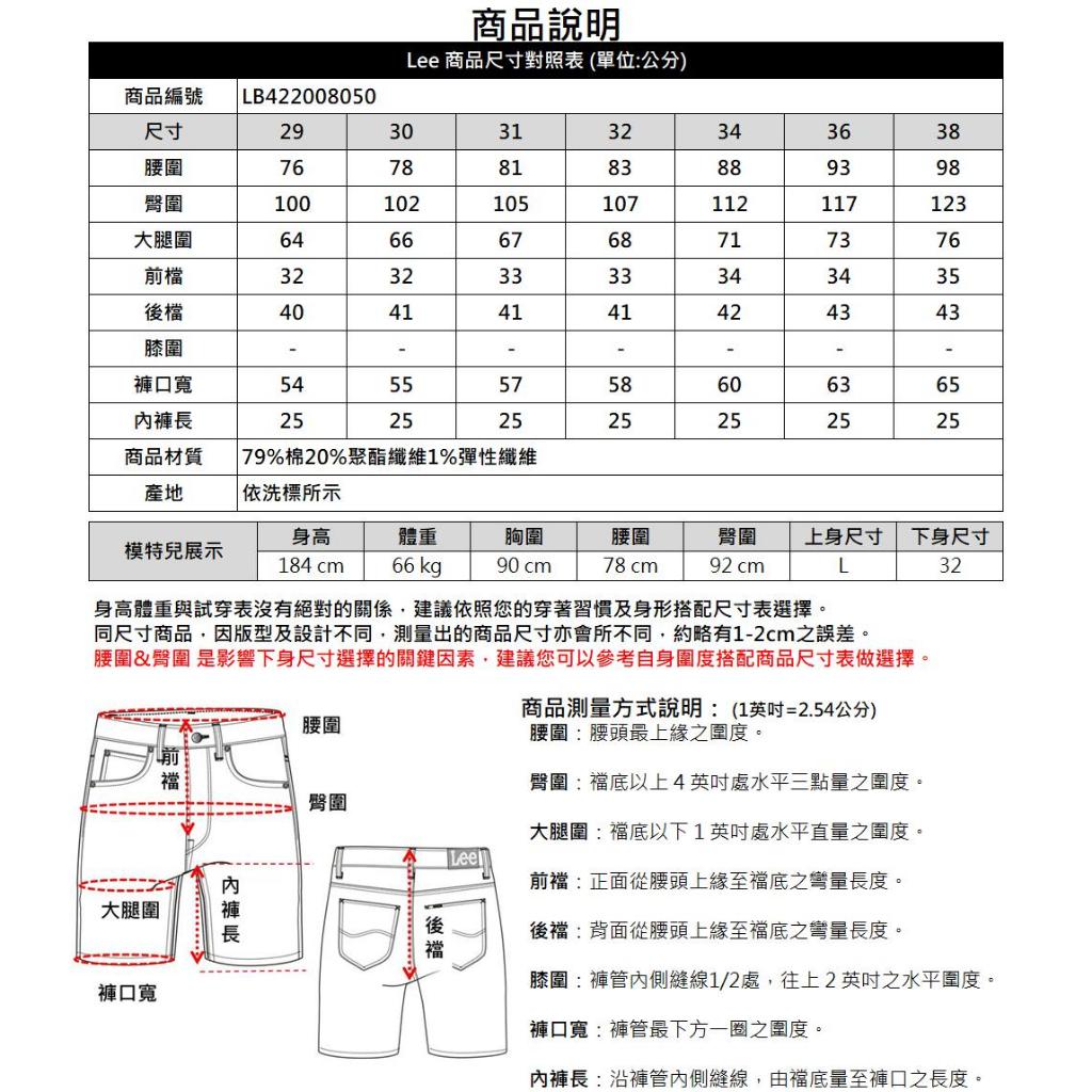 Lee 903 彈性牛仔短褲 男 中藍洗水 LB42200805029|30|31|32|34|36Lee Jeans 品牌旗艦店
