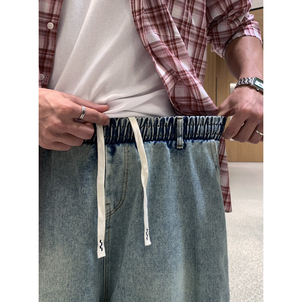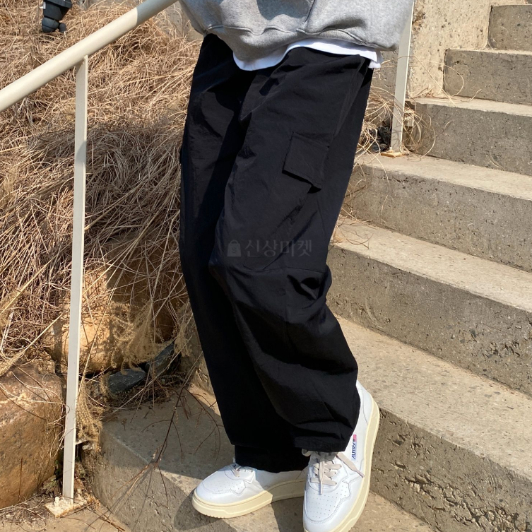 【Metanoia】韓國設計 寬鬆鬆緊帶尼龍落地褲