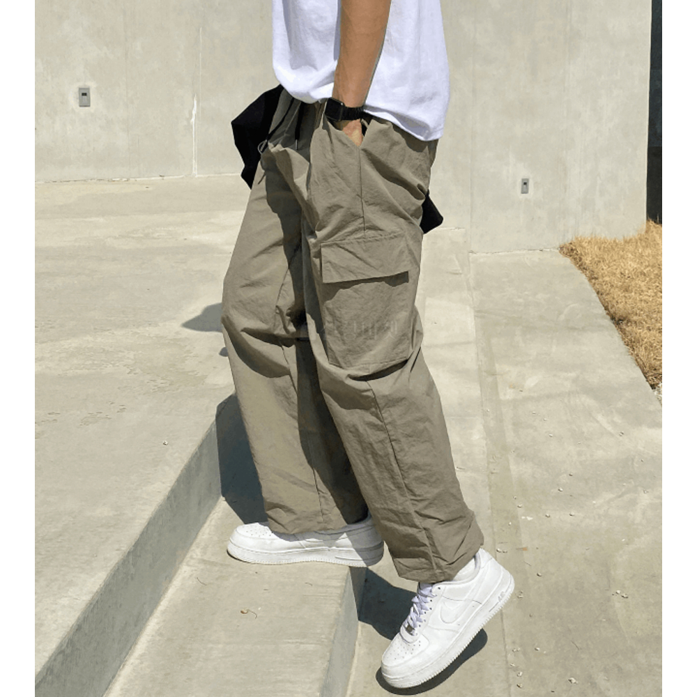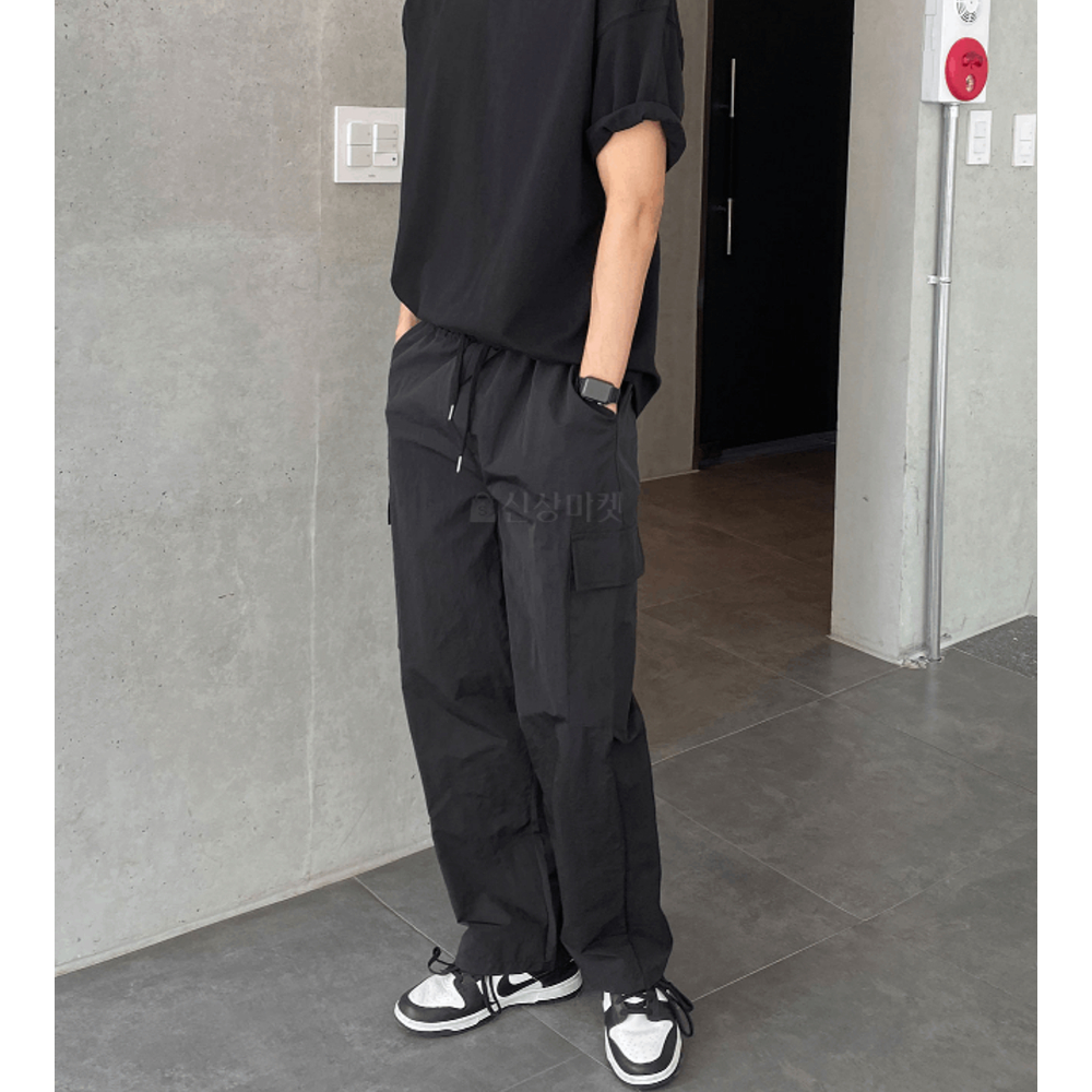 【Metanoia】韓國設計 寬鬆鬆緊帶尼龍落地褲綠色,M (30-34 腰)|灰色,S (26-29 腰)|灰色,M (30-34 腰)|黑色,S (26-29 腰)|黑色,M (30-34 腰)|綠色,S (26-29 腰)PantsMetanoia 正韓服飾 & MdoC 總代理
