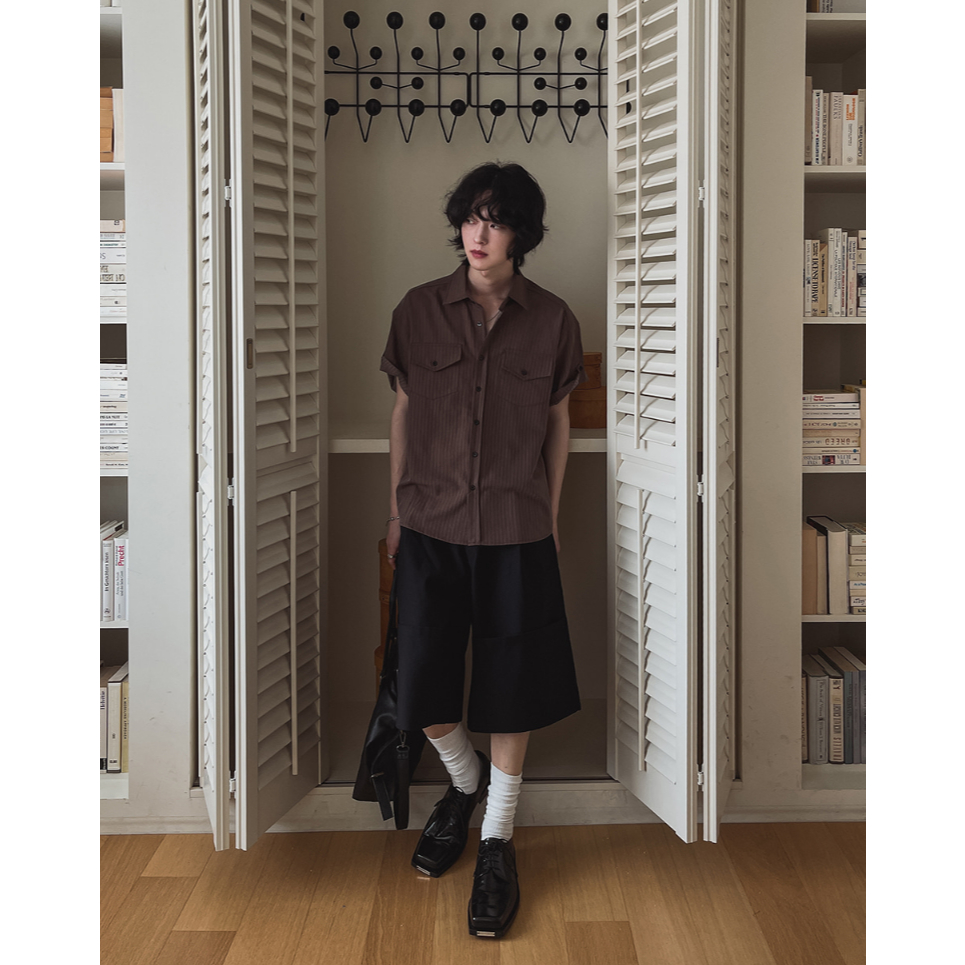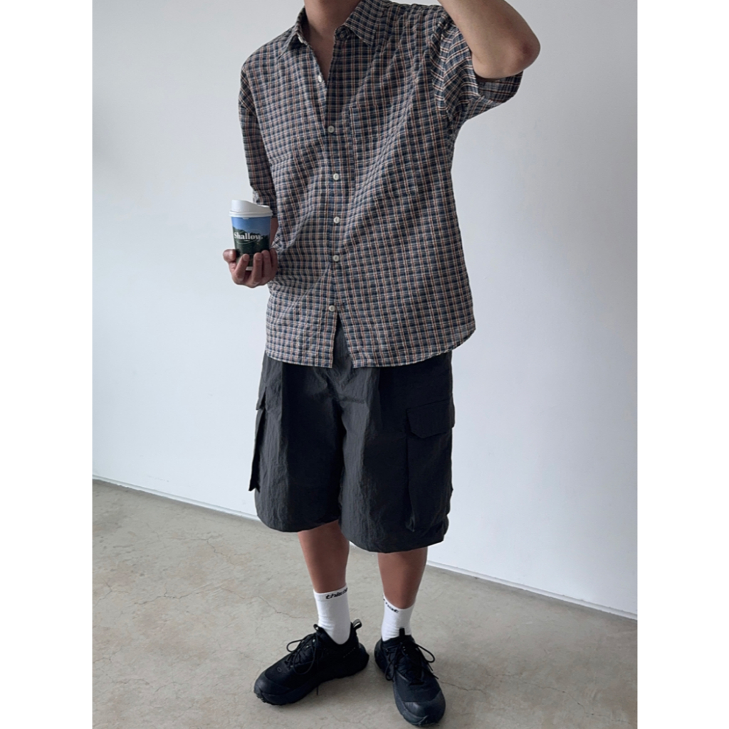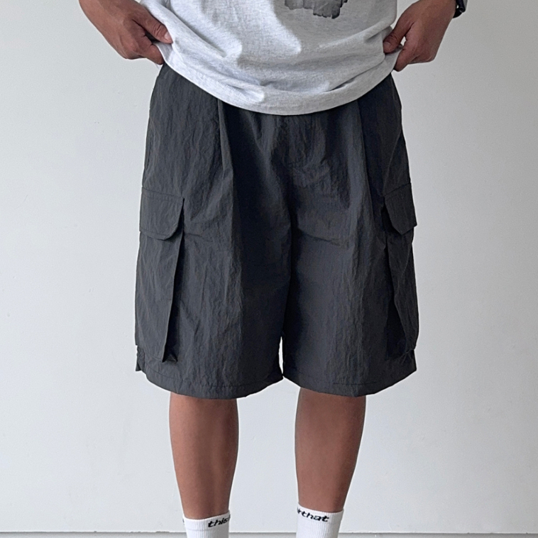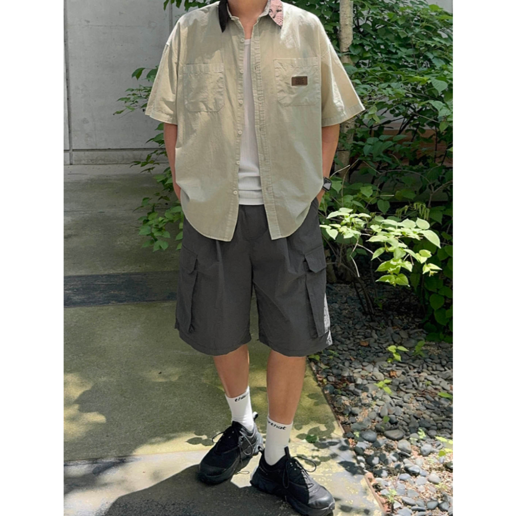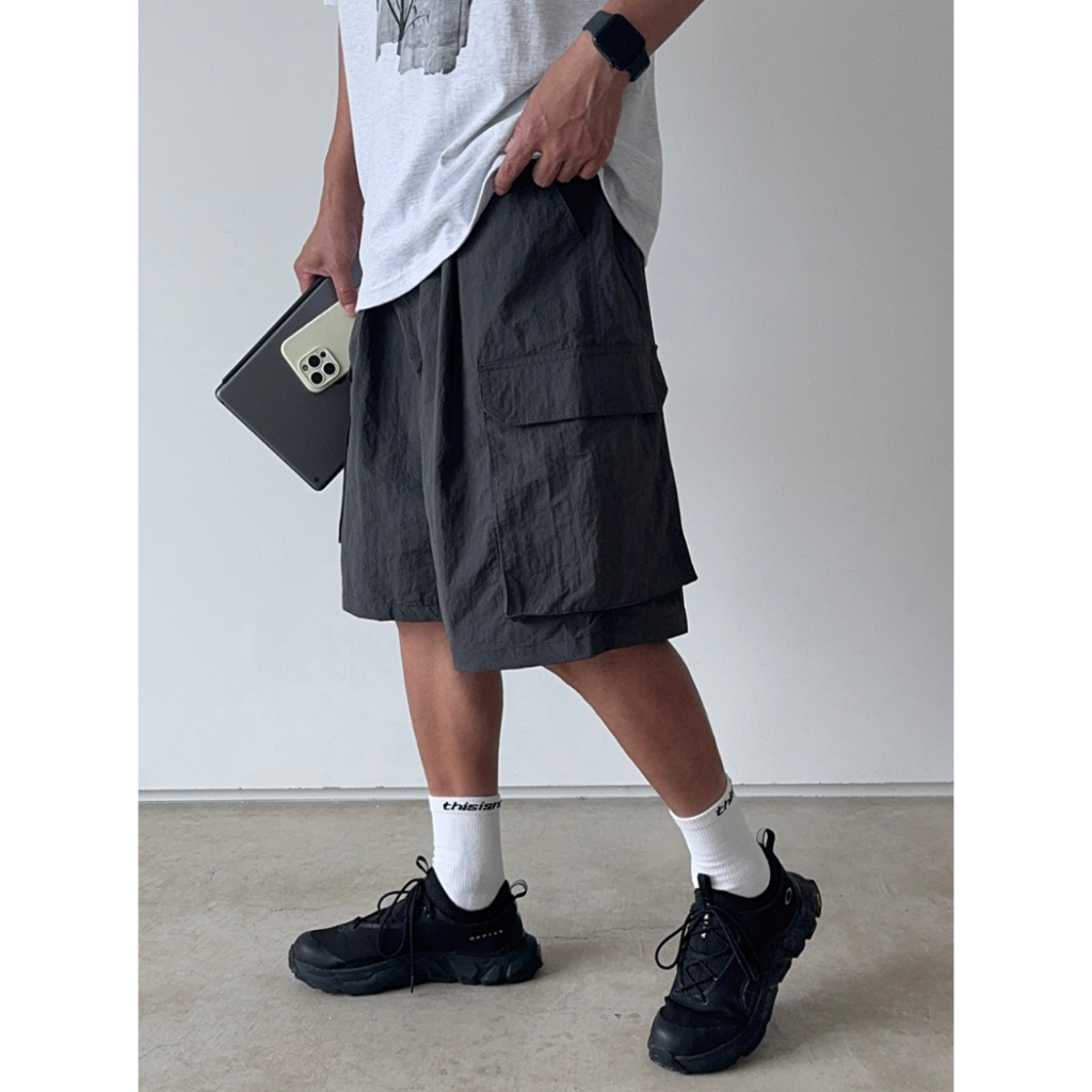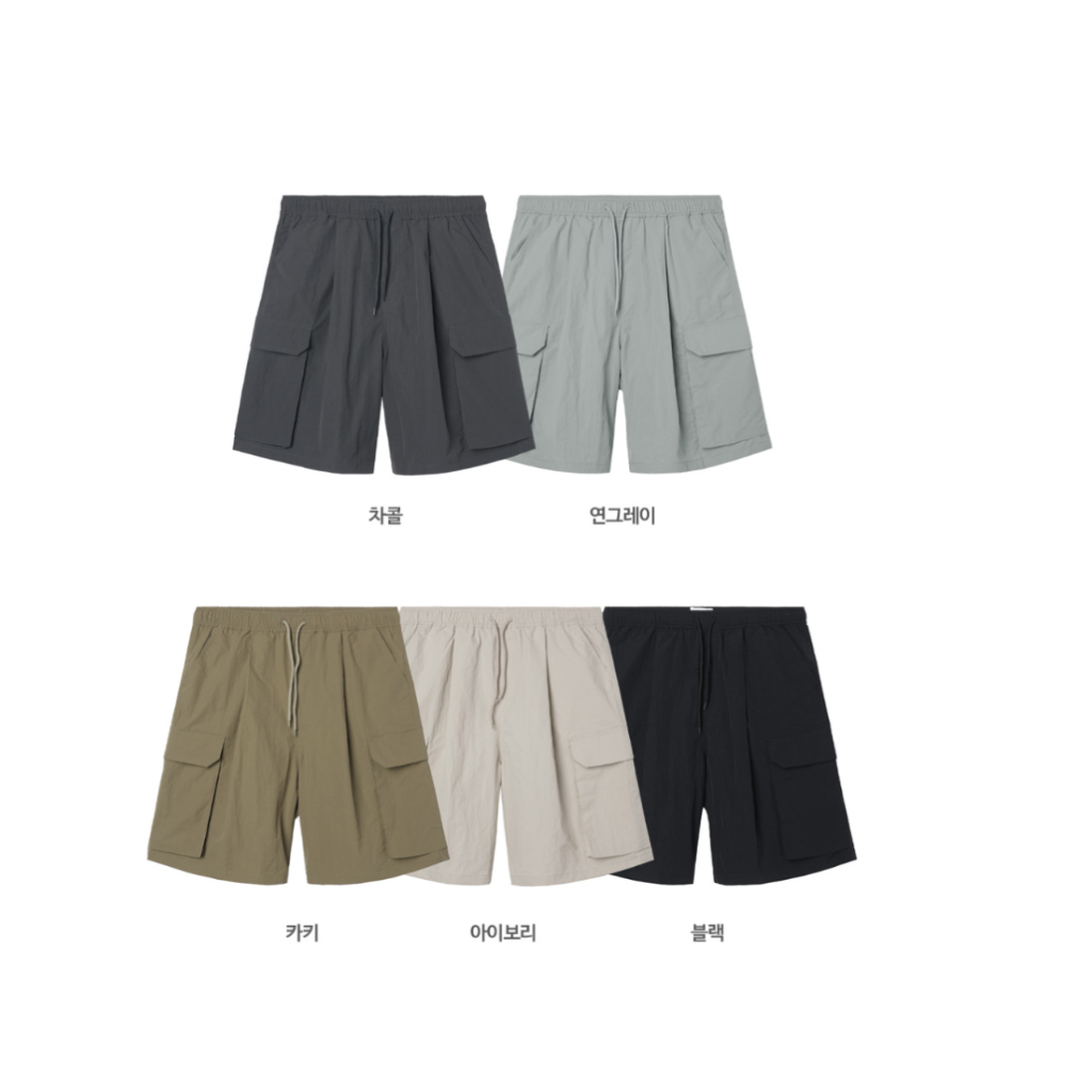 【Metanoia】韓國設計 尼龍工裝短褲淺米色,F|卡其色,F|黑色,F|淺灰,F|深灰,FMetanoia 正韓服飾 & MdoC 總代理