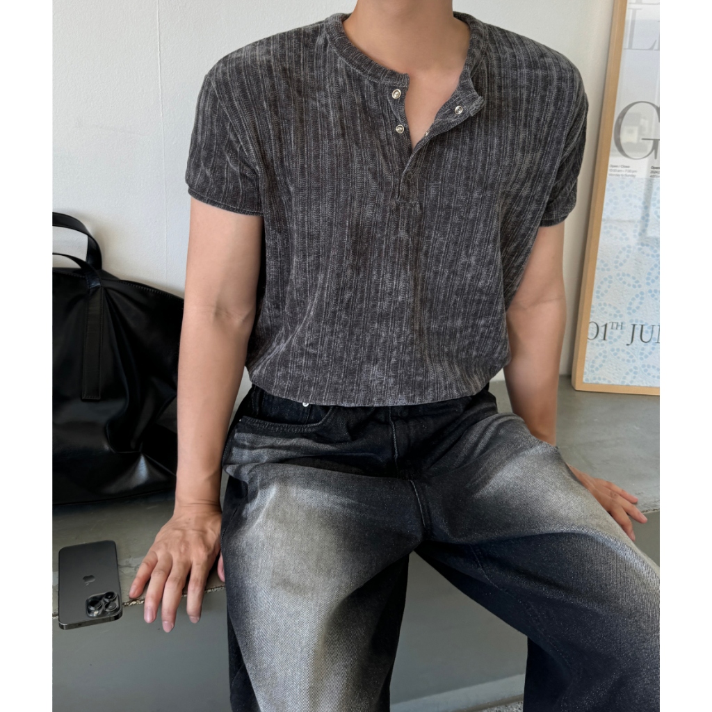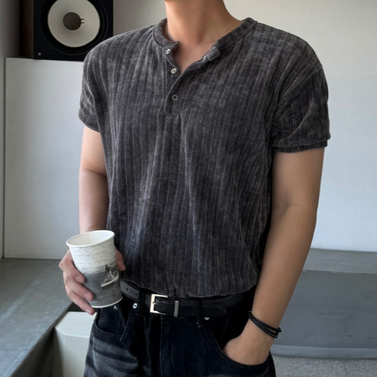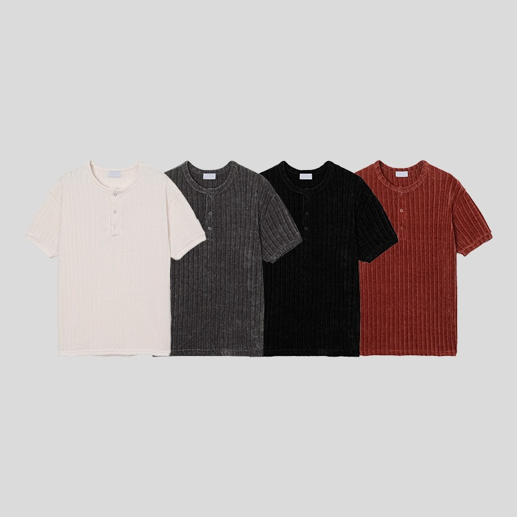 【Metanoia】🇰🇷韓製 絲絨羅紋亨利領短袖上衣白色,F|黑色,F|灰色,F|紅色,FT-ShirtsMetanoia 正韓服飾 & MdoC 總代理