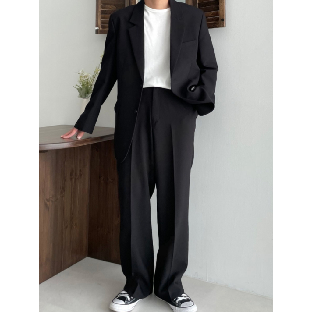 【Metanoia】🇰🇷韓製 後鬆緊寬鬆西裝落地褲