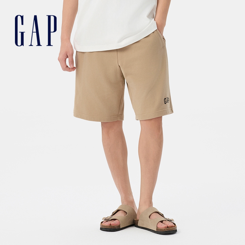 Gap 男裝 Logo印花抽繩鬆緊短褲-卡其色(729393)M|L|XL|XXL|XXXL|SGap官方旗艦店