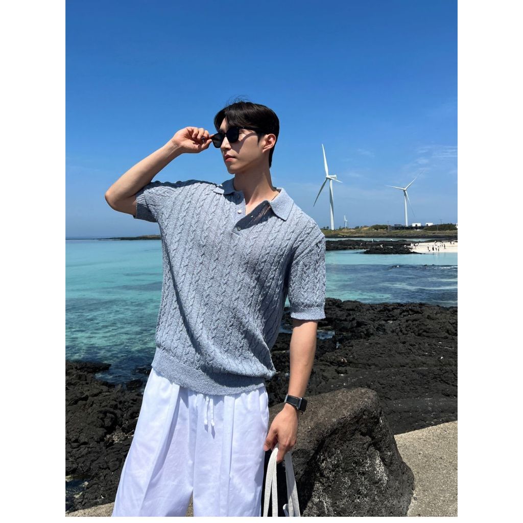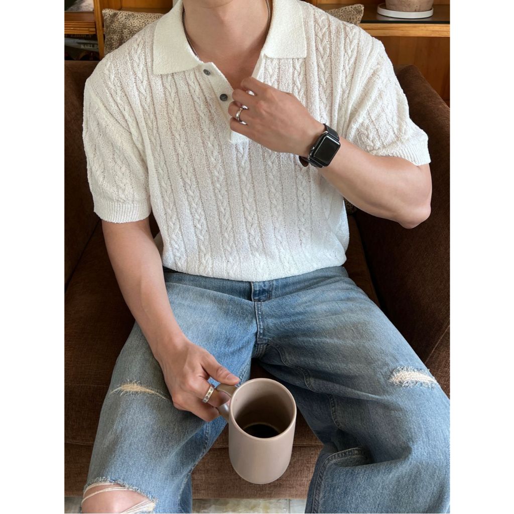 【Metanoia】韓國設計 麻花針織短袖上衣紫色,F|象牙色,F|黑色,F|藍灰色,FMetanoia 正韓服飾 & MdoC 總代理