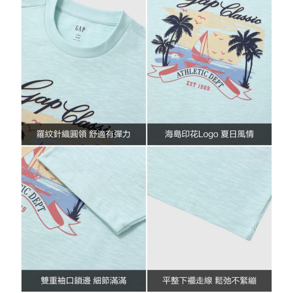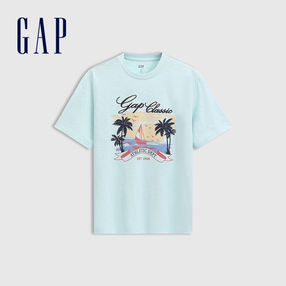 Gap 男裝 Logo純棉印花圓領短袖T恤-水綠色(729117)S|M|L|XL|XXL|XXXLT-ShirtsGap官方旗艦店