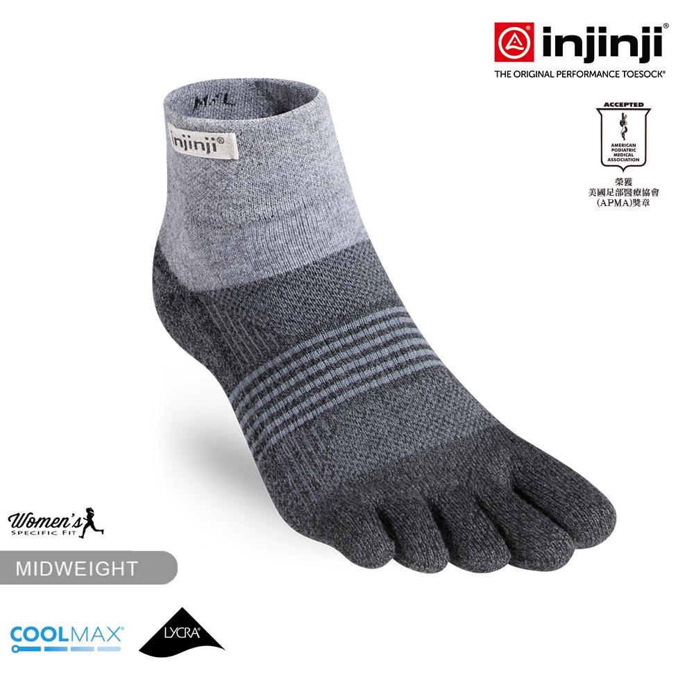 【injinji】女 Trail野跑避震吸排五趾短襪(黑色) – WAA38 | 厚底防震 運動員推薦 五趾襪黑色,XSS|黑色,MLGOHIKING戶外用品專賣店
