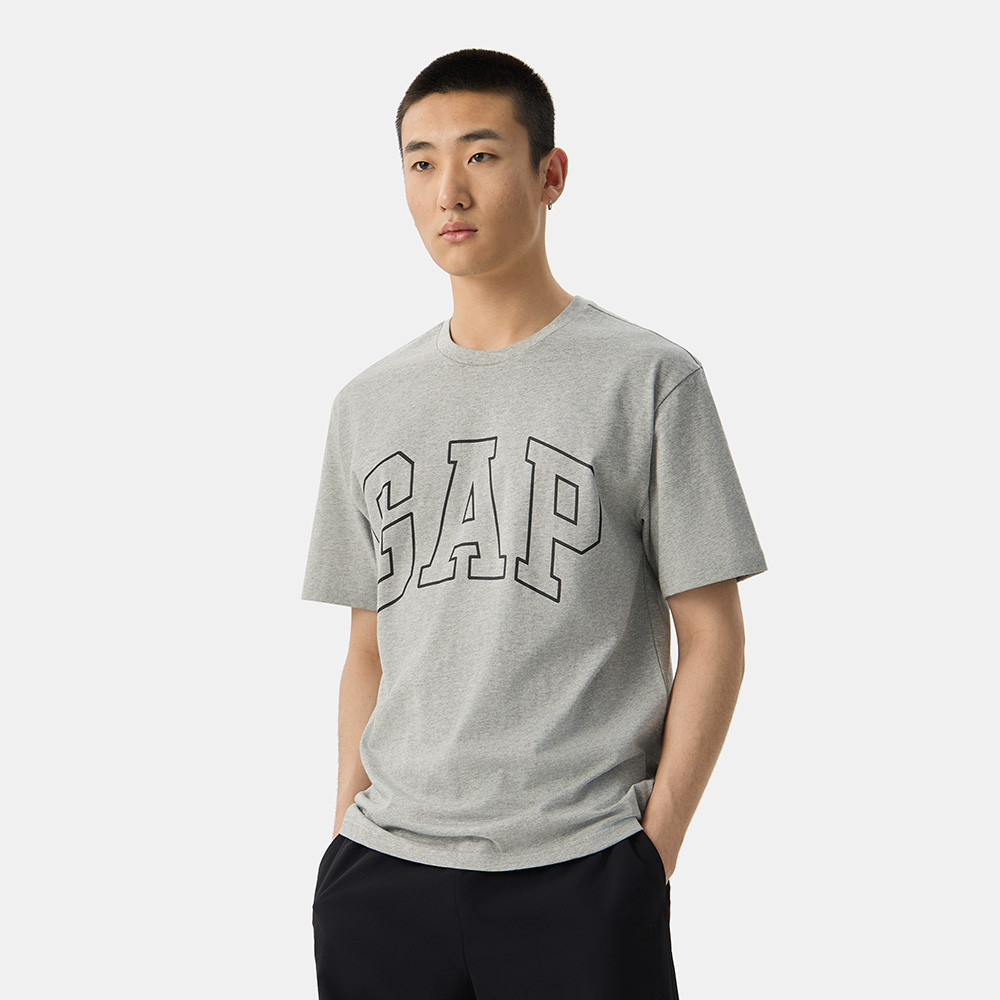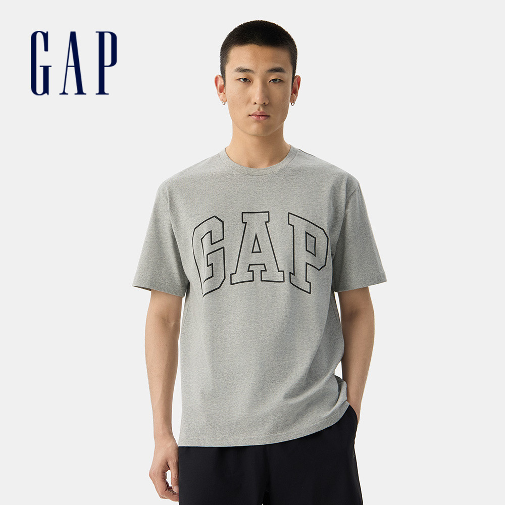 Gap 男裝 Logo純棉印花圓領短袖T恤-淺灰色(725617)XXL|XXXL|XS|S|M|L|XLT-ShirtsGap官方旗艦店