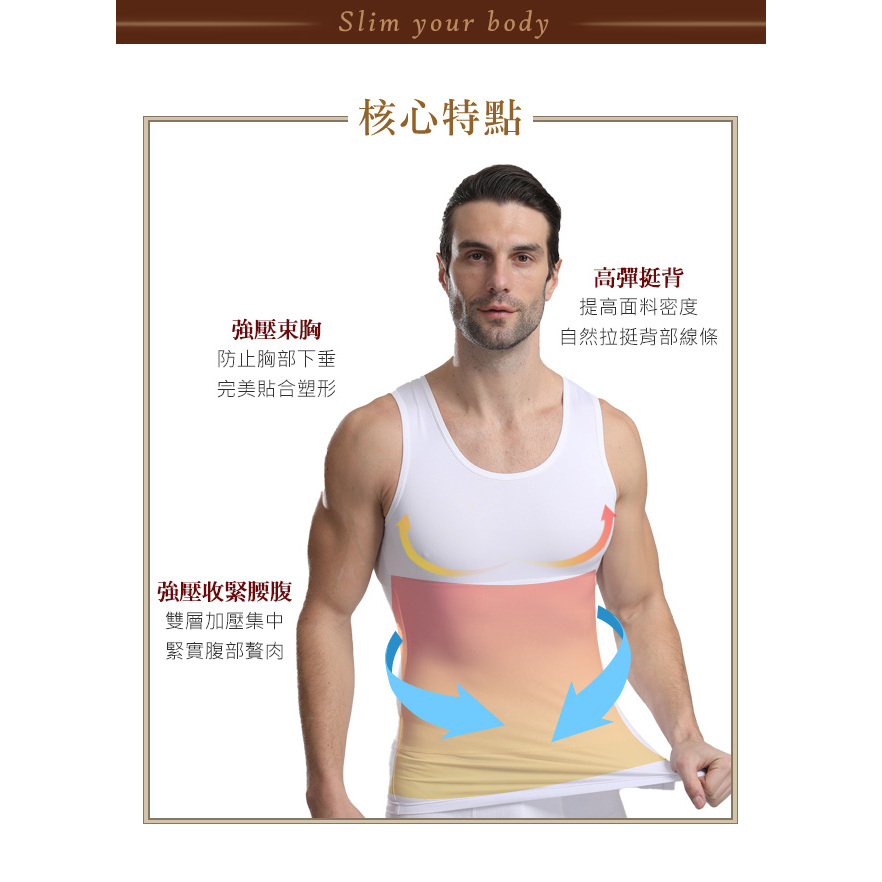 【Charmen】NY025高彈束胸收腹無袖塑身衣 | 男性塑身衣 (台灣24h出貨)白色L|白色XL|白色L*2|白色XL*2UndershirtsLeader Sports 官方直營店