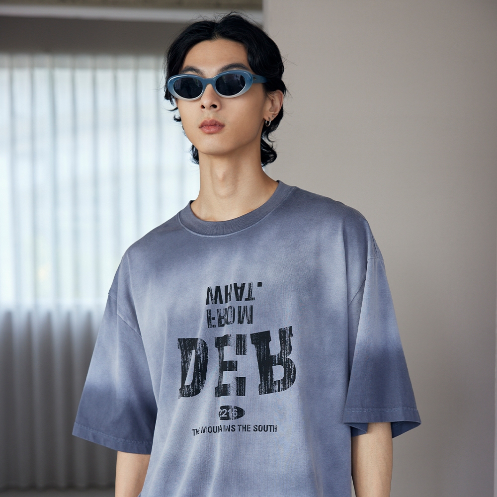 LAKING-簡約潮流英文字母印花短T灰藍色,M|灰藍色,L|灰藍色,XLT-ShirtsLAKING官方旗艦店