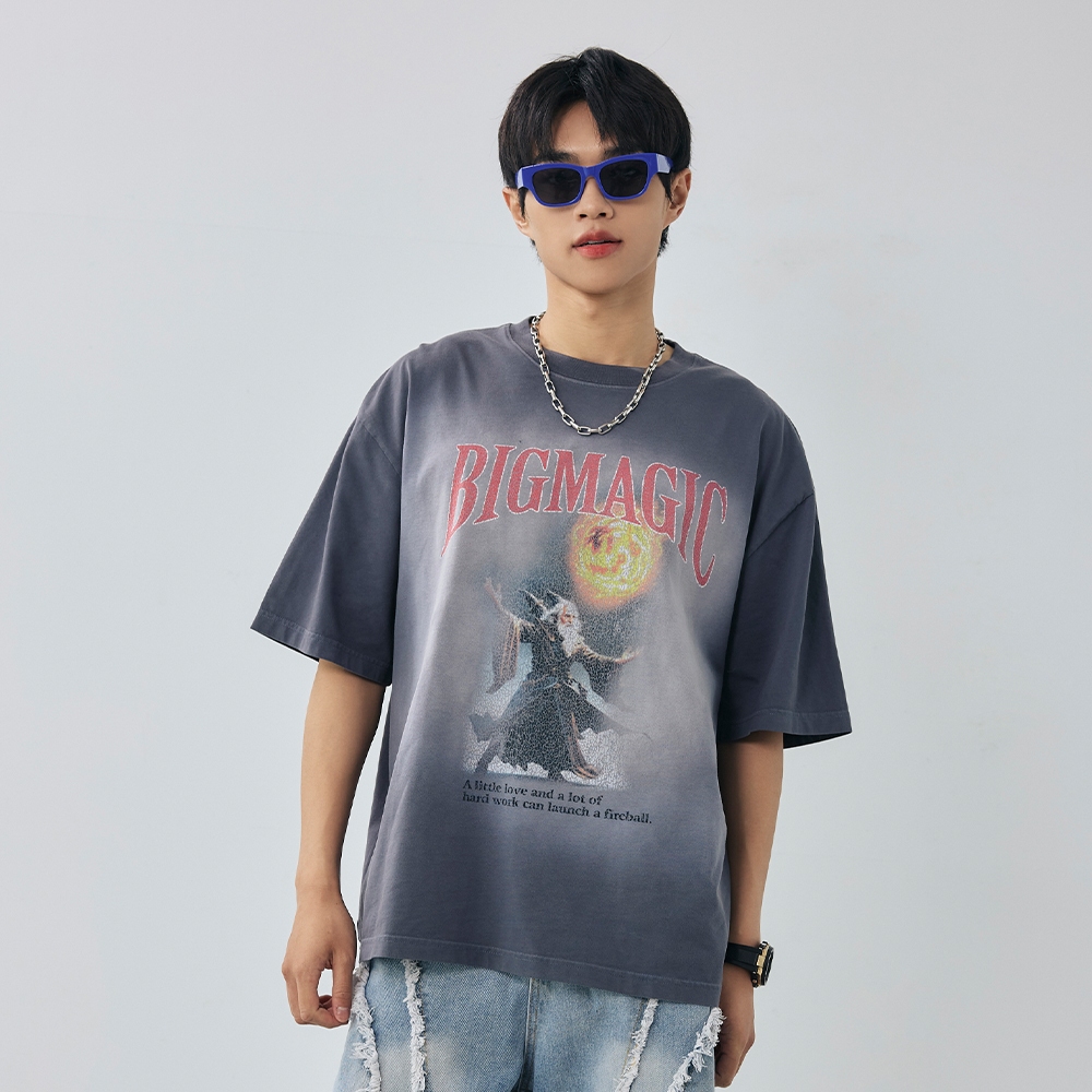 LAKING-洗舊魔法師大圖短T黑色,L|黑色,XL|藍色,M|藍色,L|藍色,XL|黑色,MT-ShirtsLAKING官方旗艦店