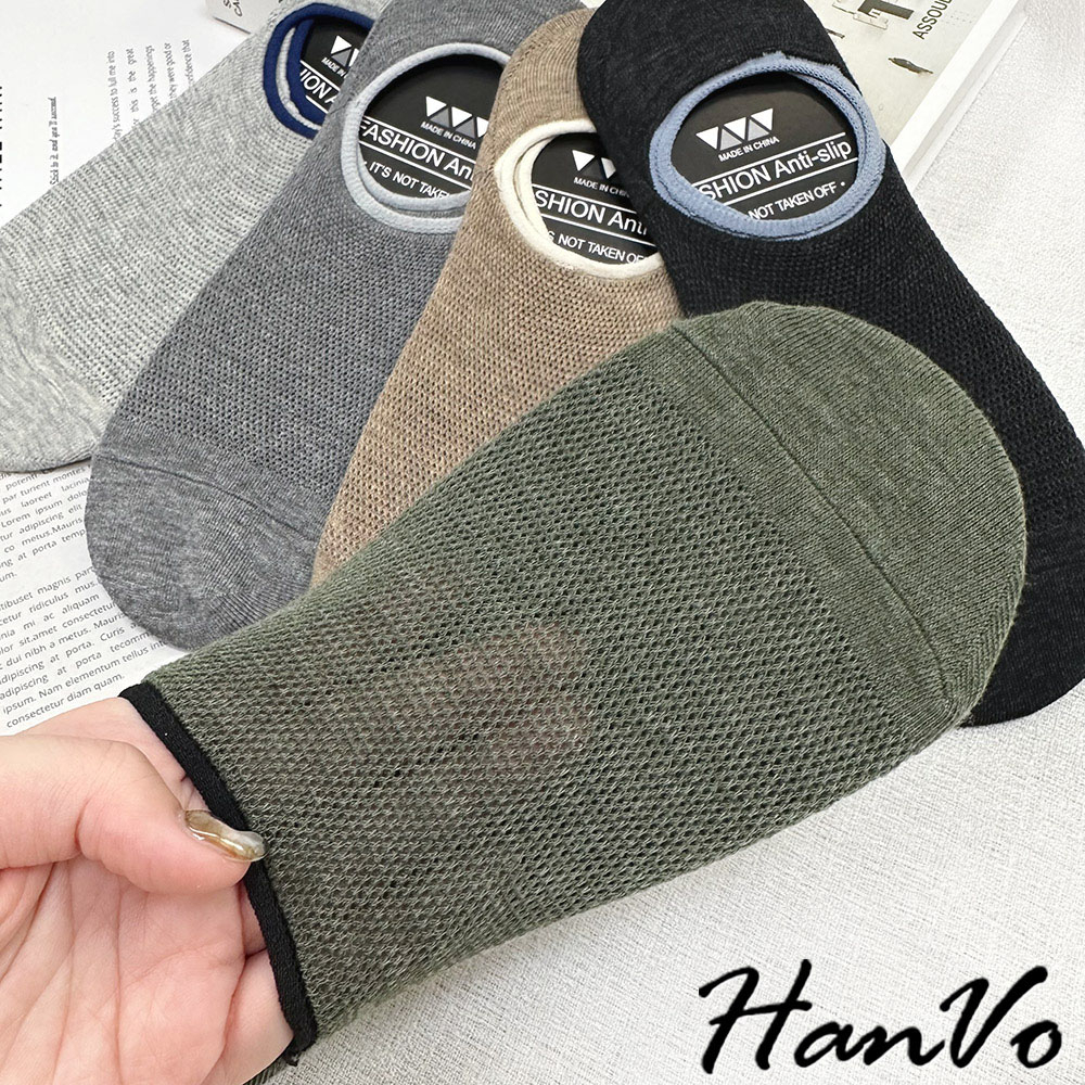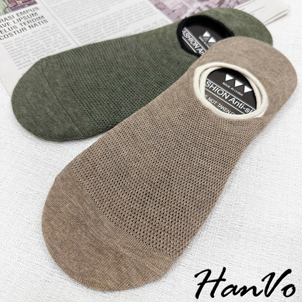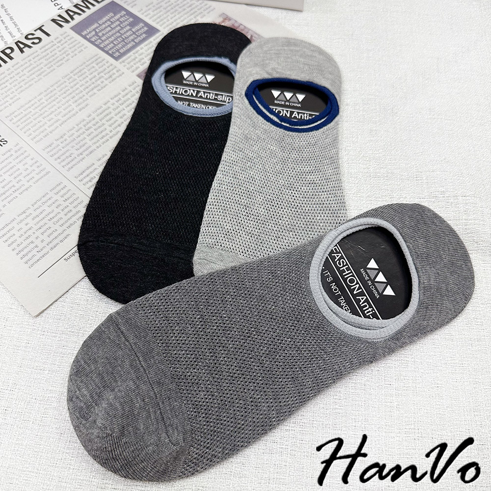 【HanVo】男款撞色滾邊透氣網眼隱形短襪 百搭基本款超透氣隱形襪 純色簡約休閒襪 男生配件 B07-7010黑色|咖色|綠色|深灰色|淺灰色HanVo Wear Collection