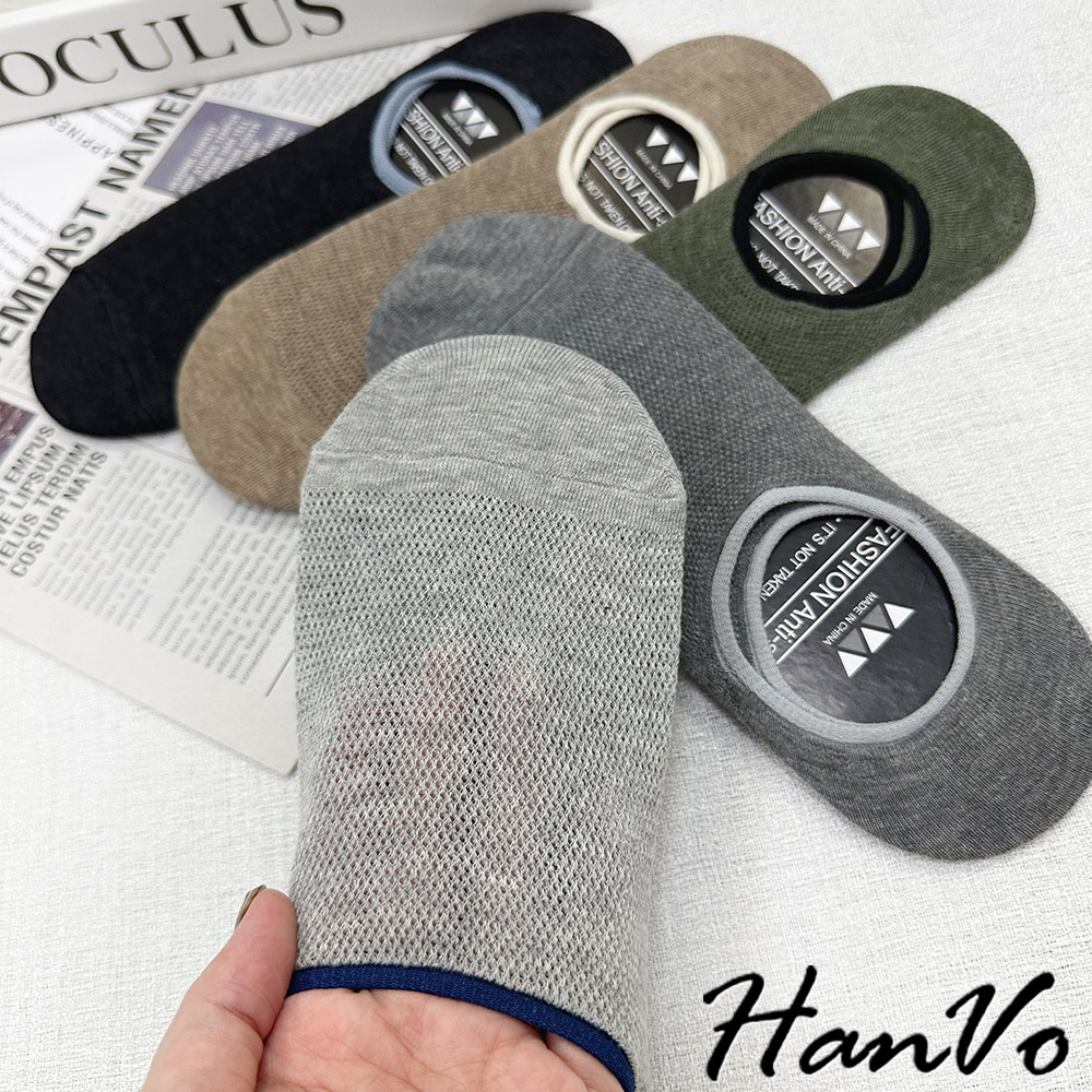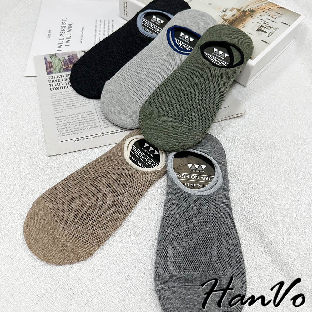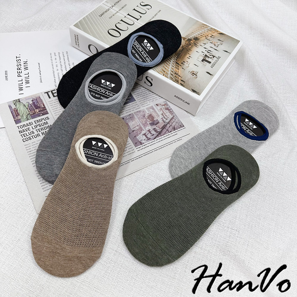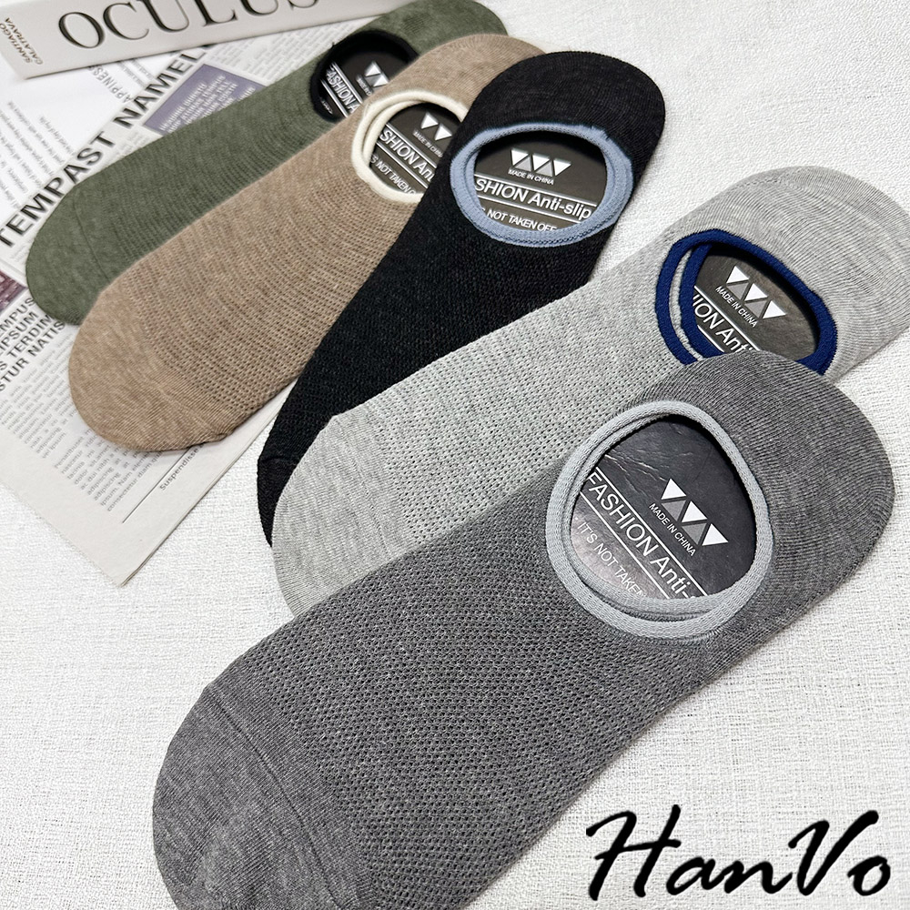 【HanVo】男款撞色滾邊透氣網眼隱形短襪 百搭基本款超透氣隱形襪 純色簡約休閒襪 男生配件 B07-7010黑色|咖色|綠色|深灰色|淺灰色HanVo Wear Collection