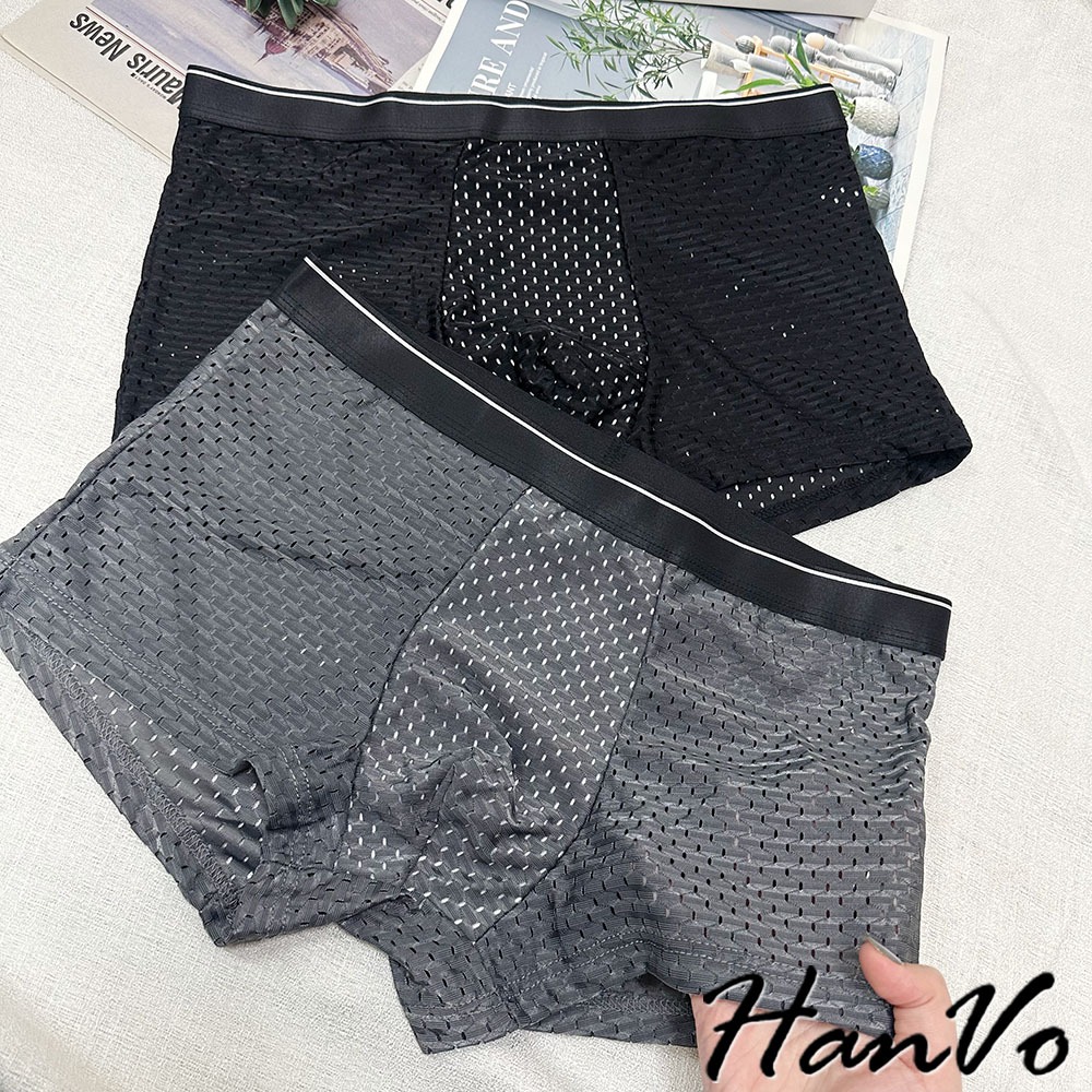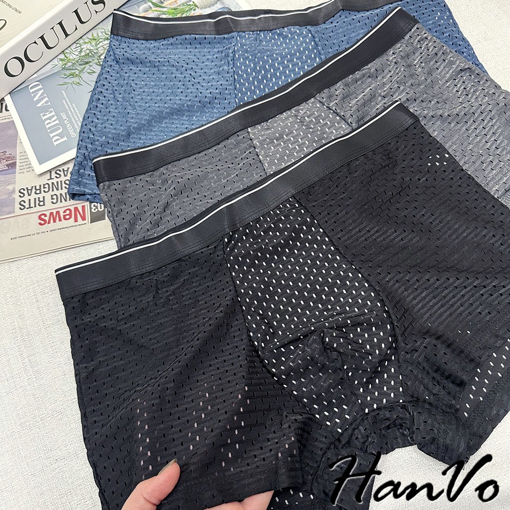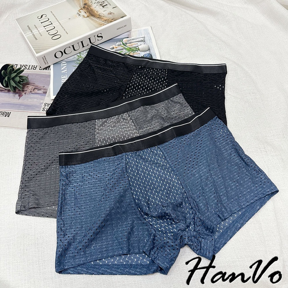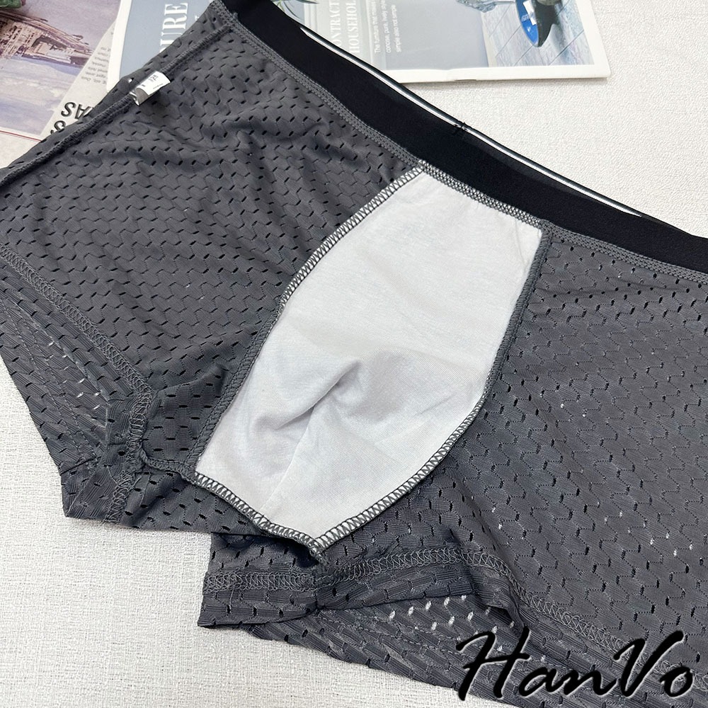 【HanVo】冰絲鏤空透氣網眼內褲 獨立包裝 透爽清涼高彈力內褲 流行男款內褲 內著 B05-5045夜幕黑|午夜藍|熔岩灰UnderwearHanVo Wear Collection