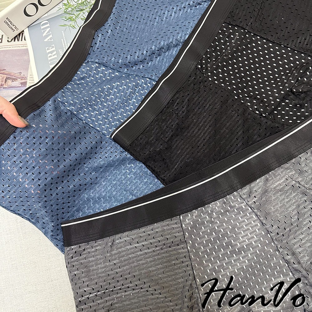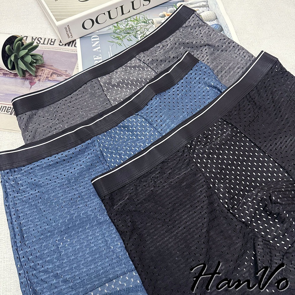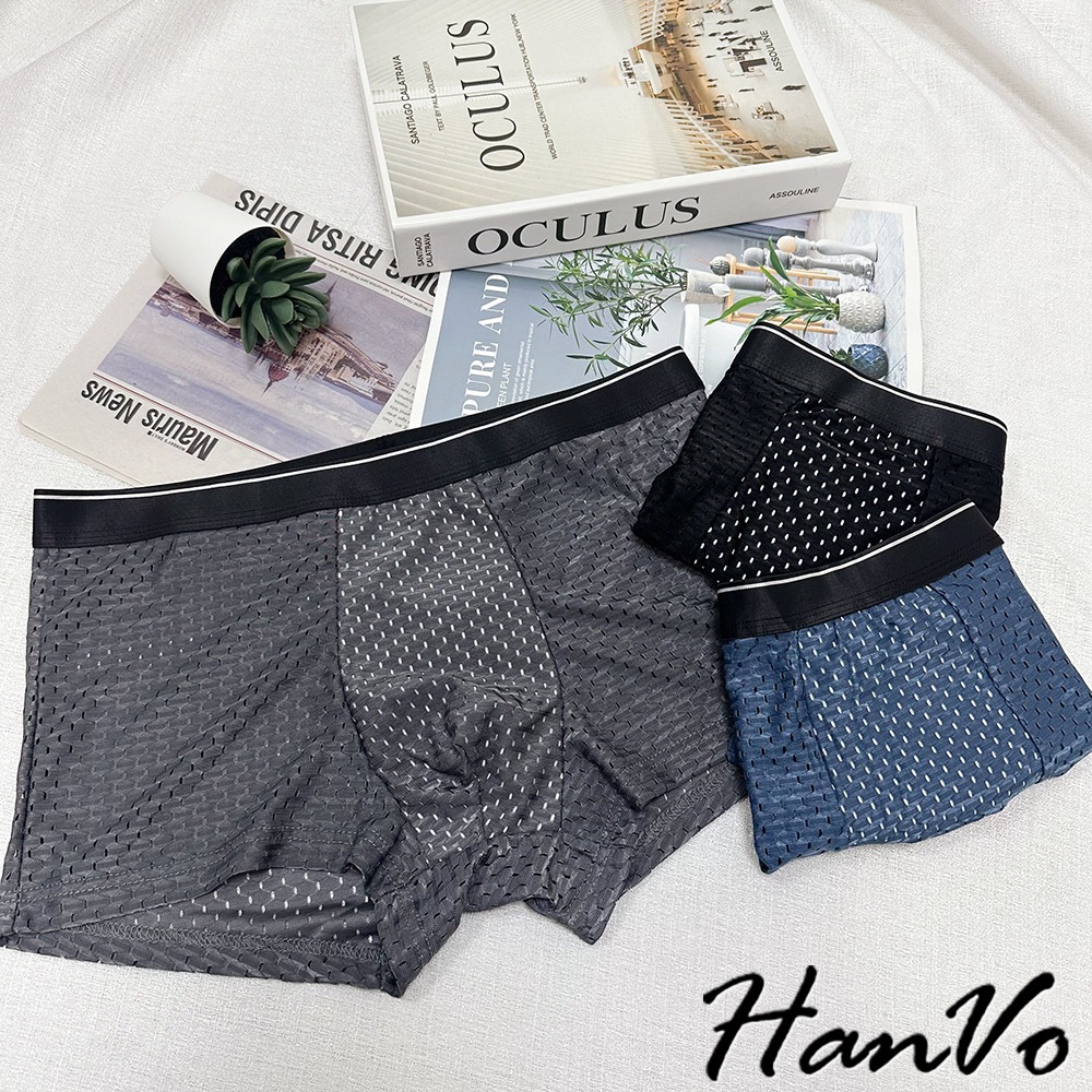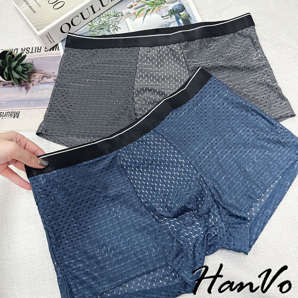 【HanVo】冰絲鏤空透氣網眼內褲 獨立包裝 透爽清涼高彈力內褲 流行男款內褲 內著 B05-5045夜幕黑|午夜藍|熔岩灰UnderwearHanVo Wear Collection