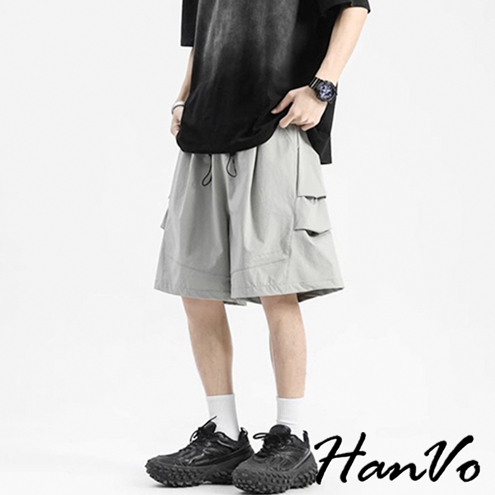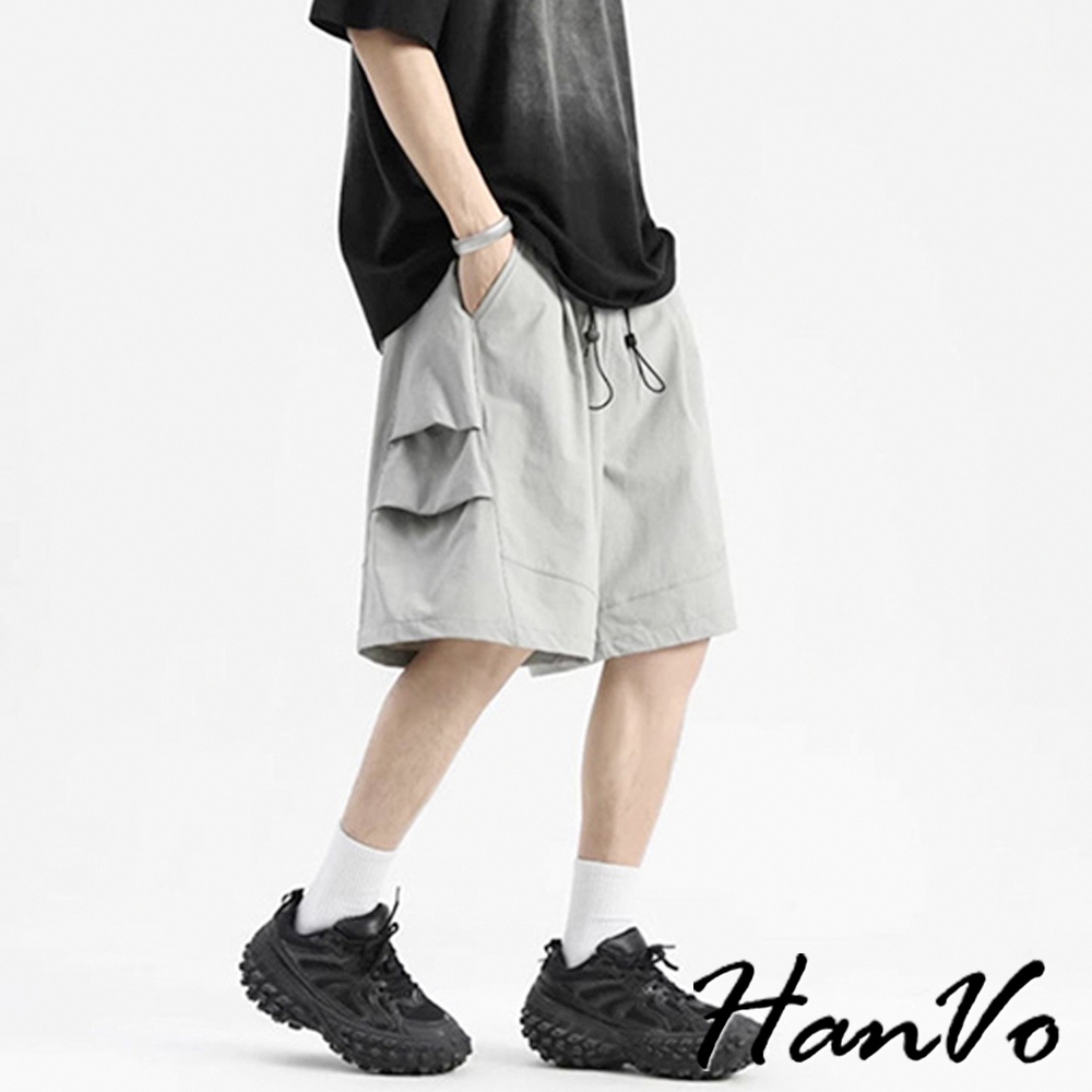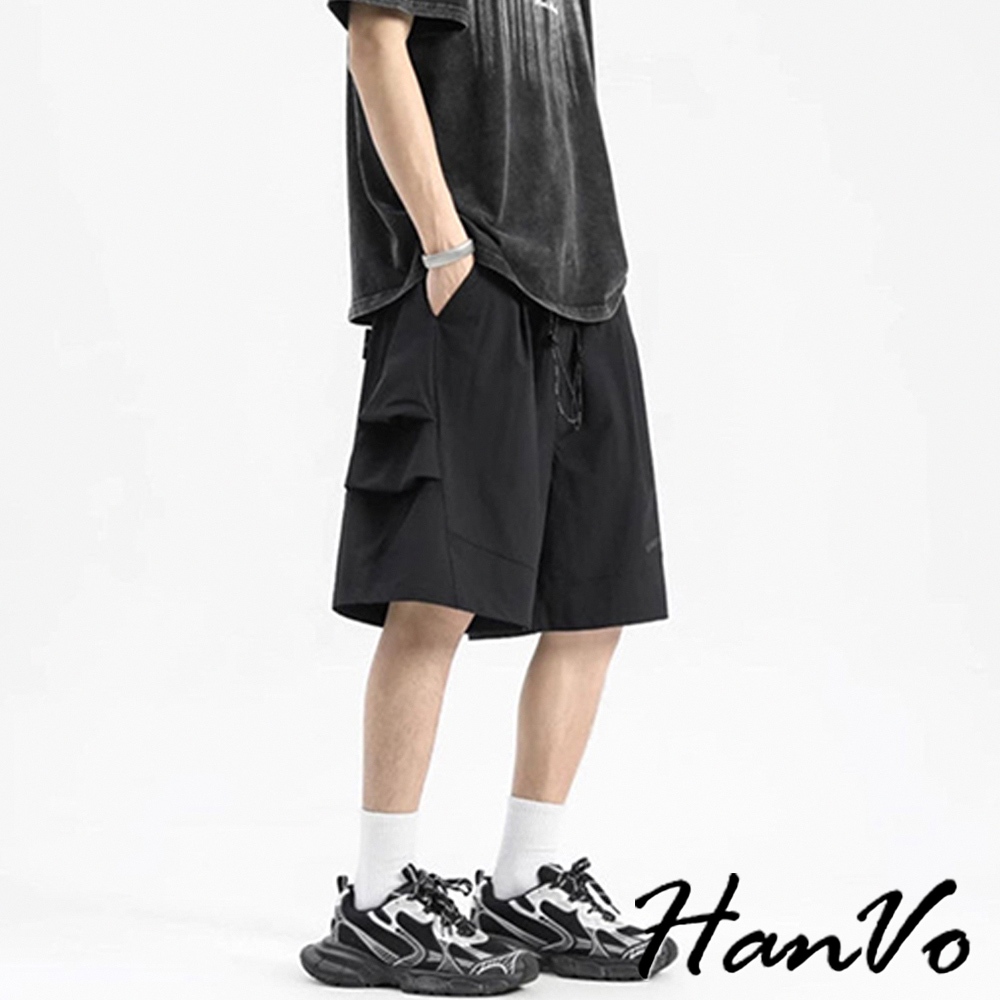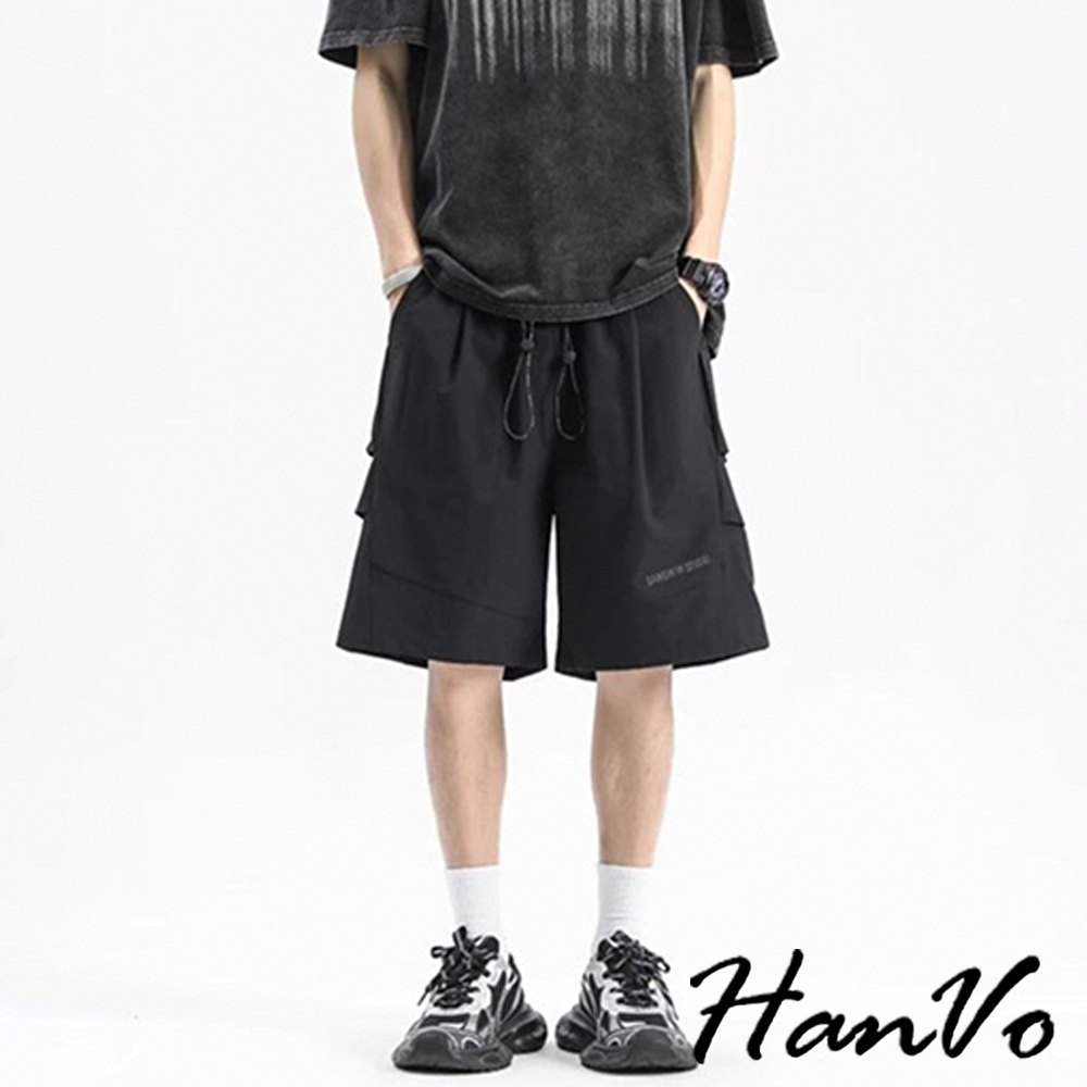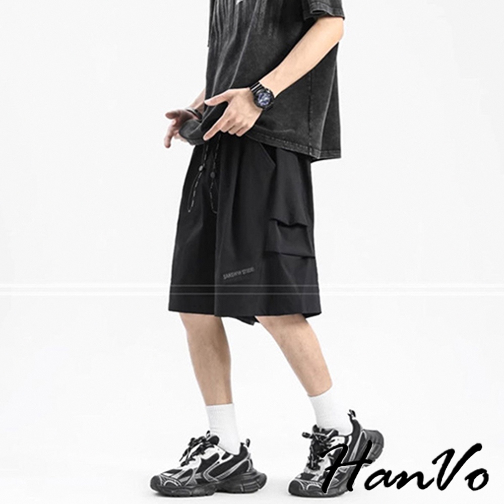【HanVo】男款側邊設計造型短褲 速乾休閒設計五分褲 夏季潮流褲 男生下著 B03-3018黑色|灰色HanVo Wear Collection