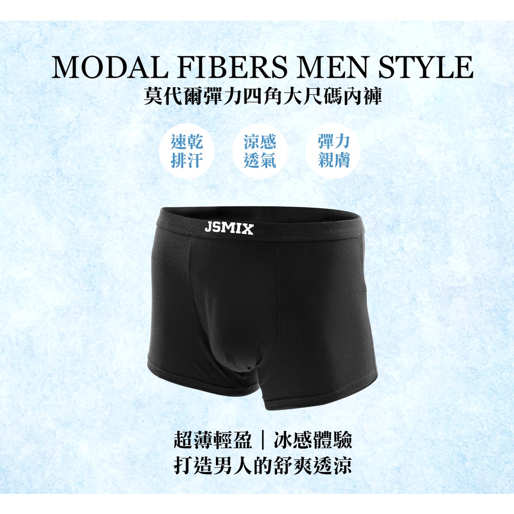 JSMIX大尺碼服飾-冰爽透涼莫代爾彈力四角大尺碼內褲(共2色)【T22JS6814】黑色,3XL|黑色,4XL|黑色,5XL|黑色,6XL|黑色,7XL|黑色,8XL|寶藍色,4XL|寶藍色,3XL|寶藍色,5XL|寶藍色,6XL|寶藍色,7XL|寶藍色,8XLUnderwearJSMIX大尺碼男裝官方商城