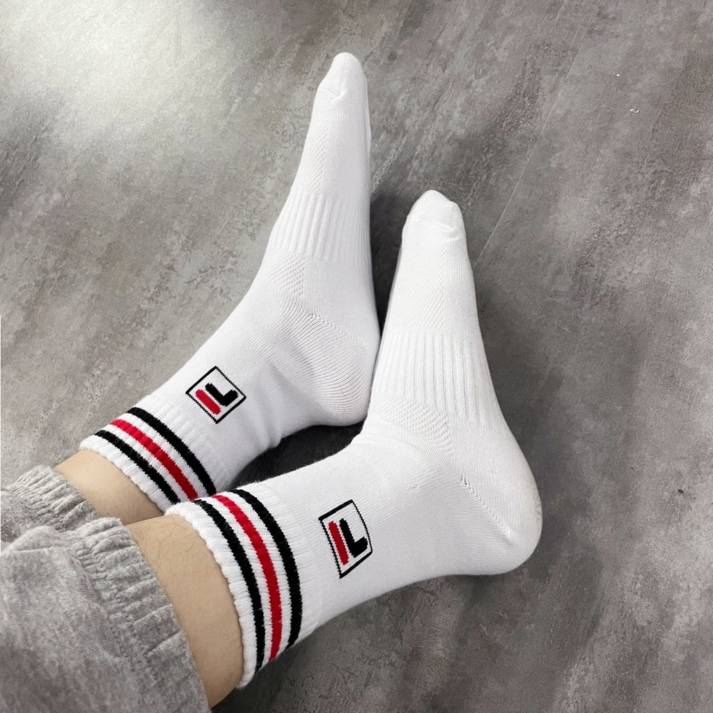 FILA 斐樂 線條襪 正品 現貨 特價衝評價 買到賺到 白襪 長襪 FILA襪 襪子 中筒襪 F 穿搭【KM88】S|M|LK-2 Fashionboy