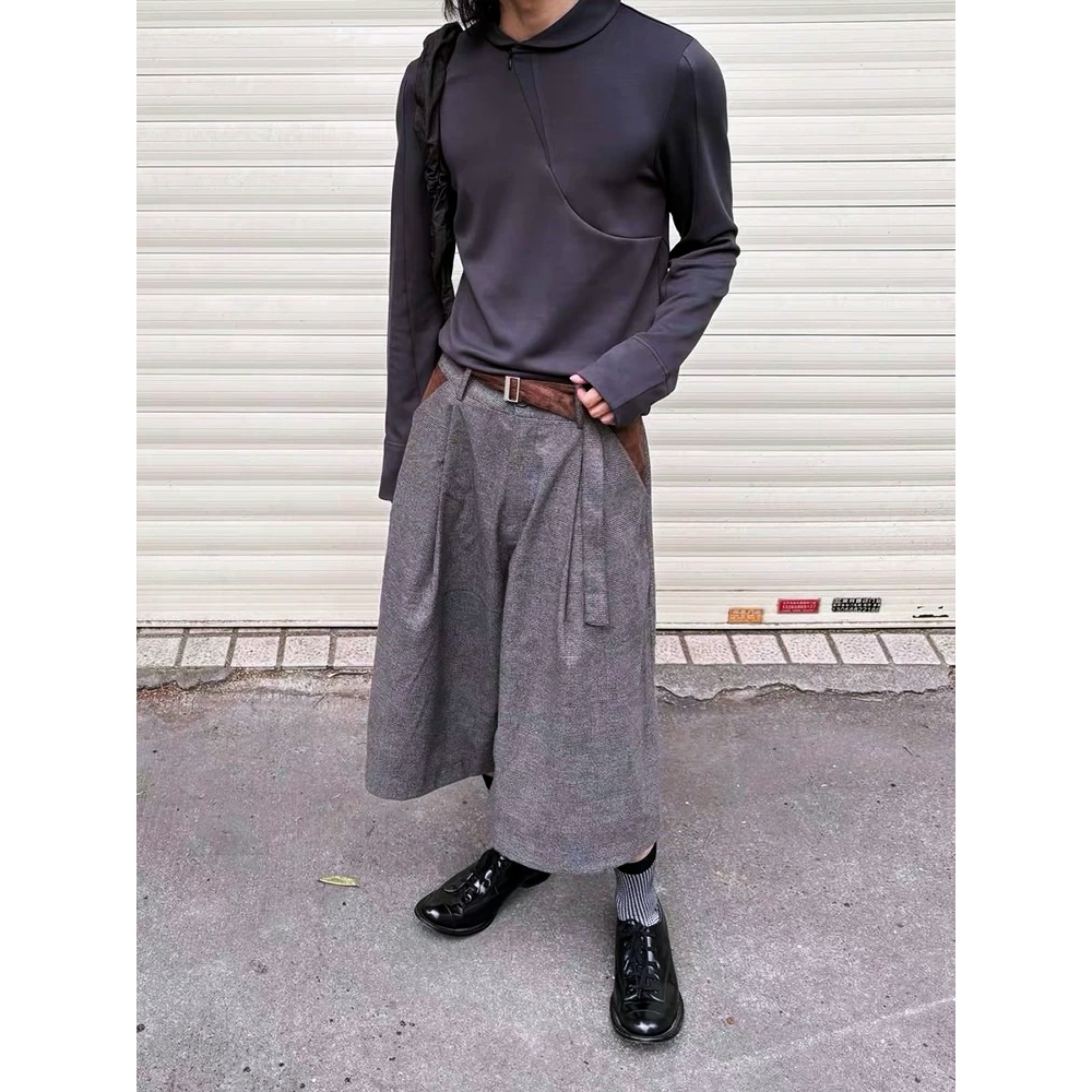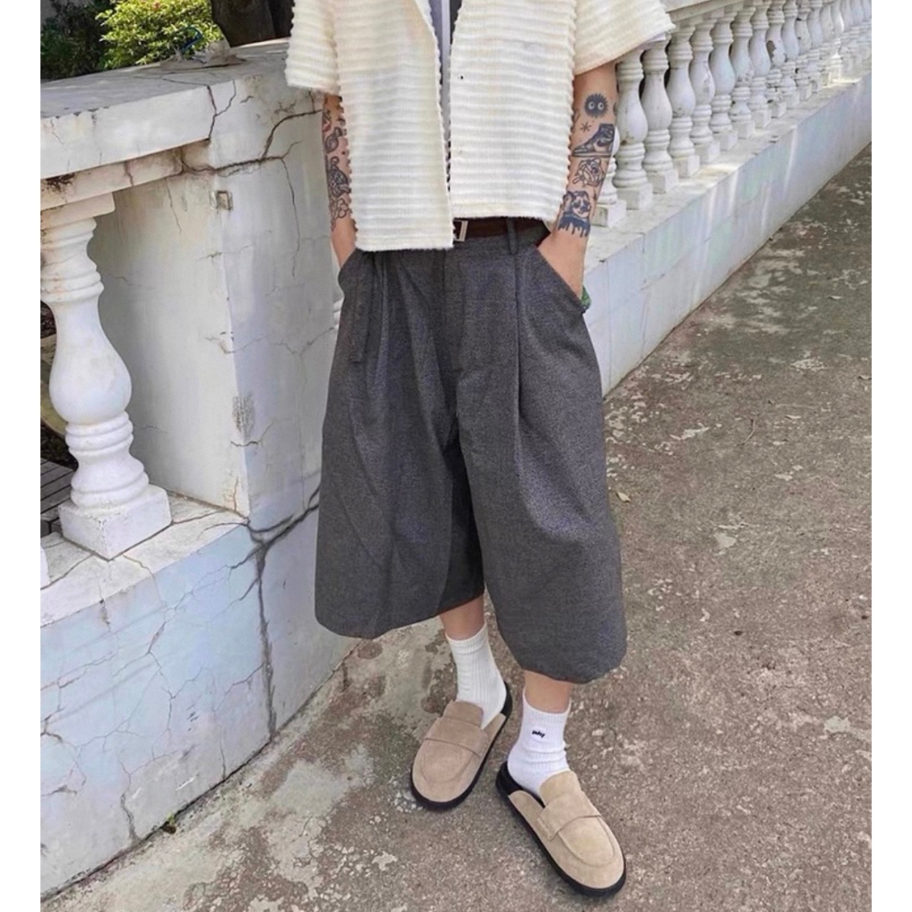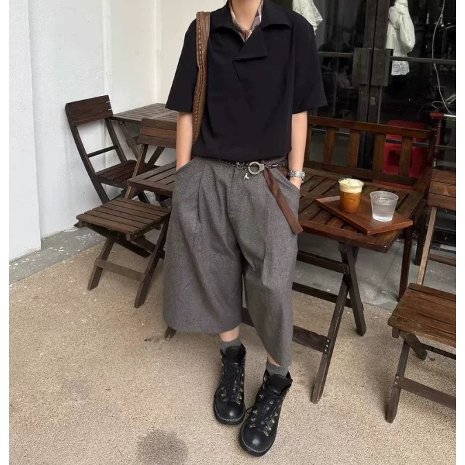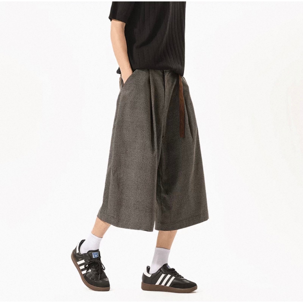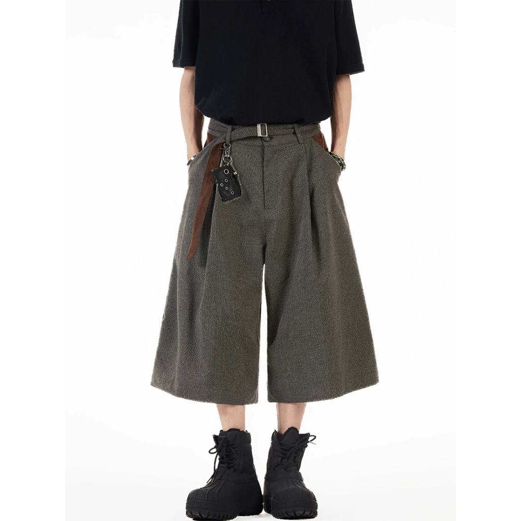 【K-2】美式復古 慵懶老錢風 千鳥格 七分短褲 麂皮拼接 七分褲 休閒短褲 老錢風 麂皮 短褲 復古短褲【JFK03】M|L|XL|XXLK-2 Fashionboy