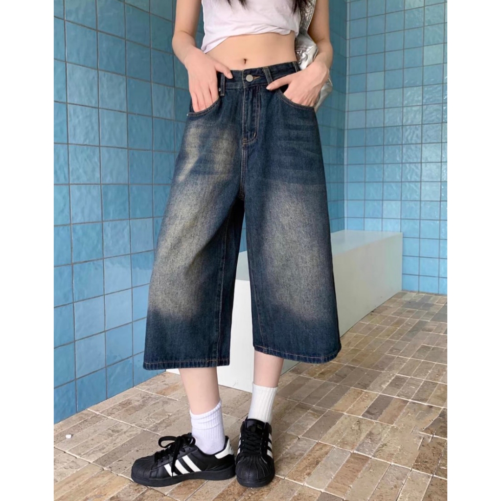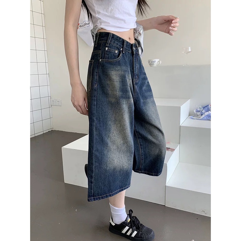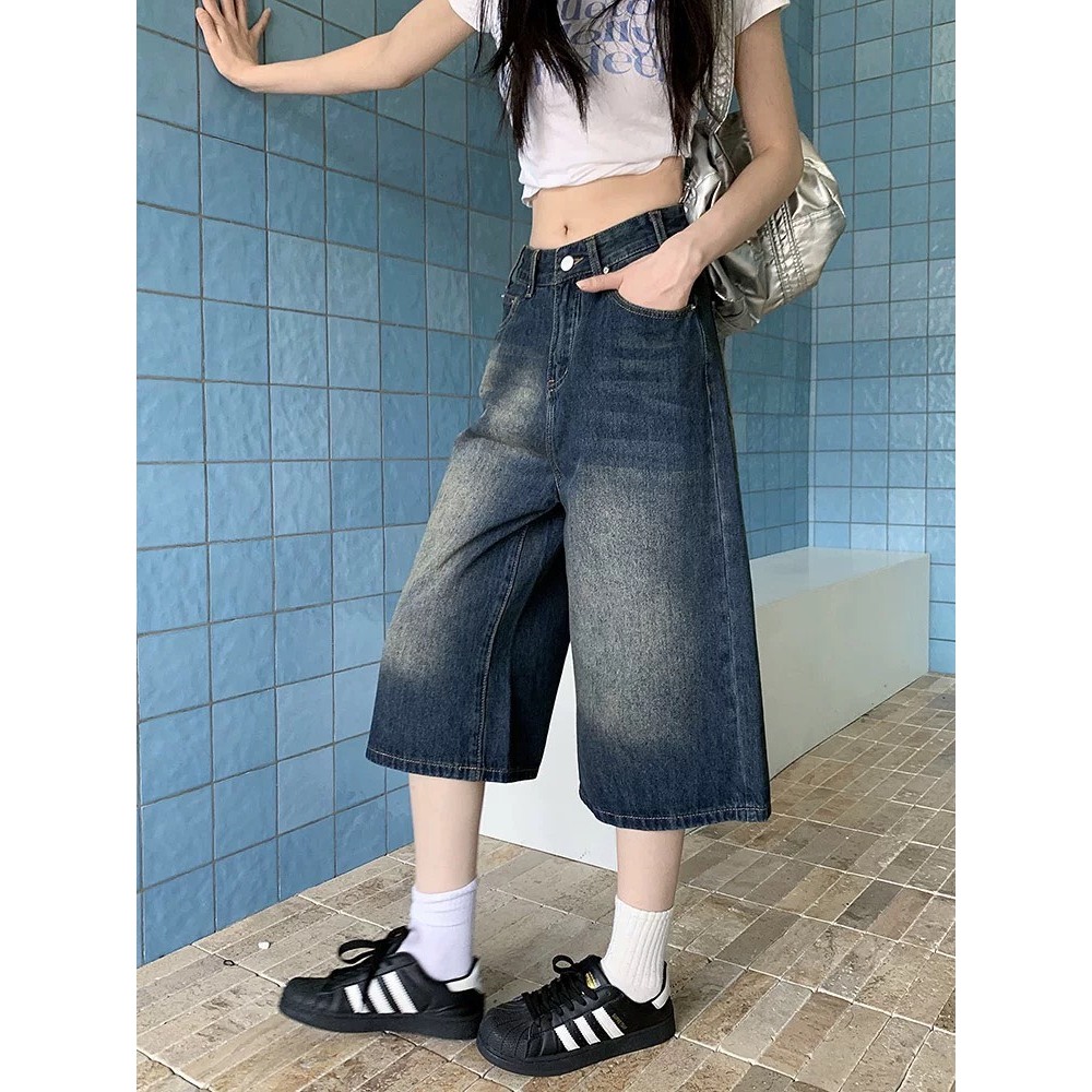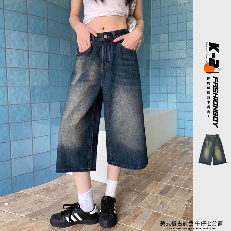 【K-2】美式復古 水洗刷色 七分牛仔褲 直筒 牛仔短褲 七分褲 牛仔七分褲 街頭 穿搭 短褲 褲子 Y2K【JD13】M|L|XL|XXLK-2 Fashionboy