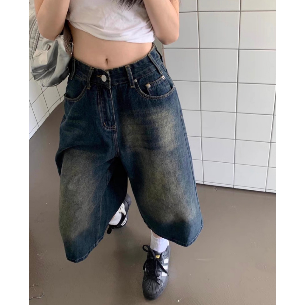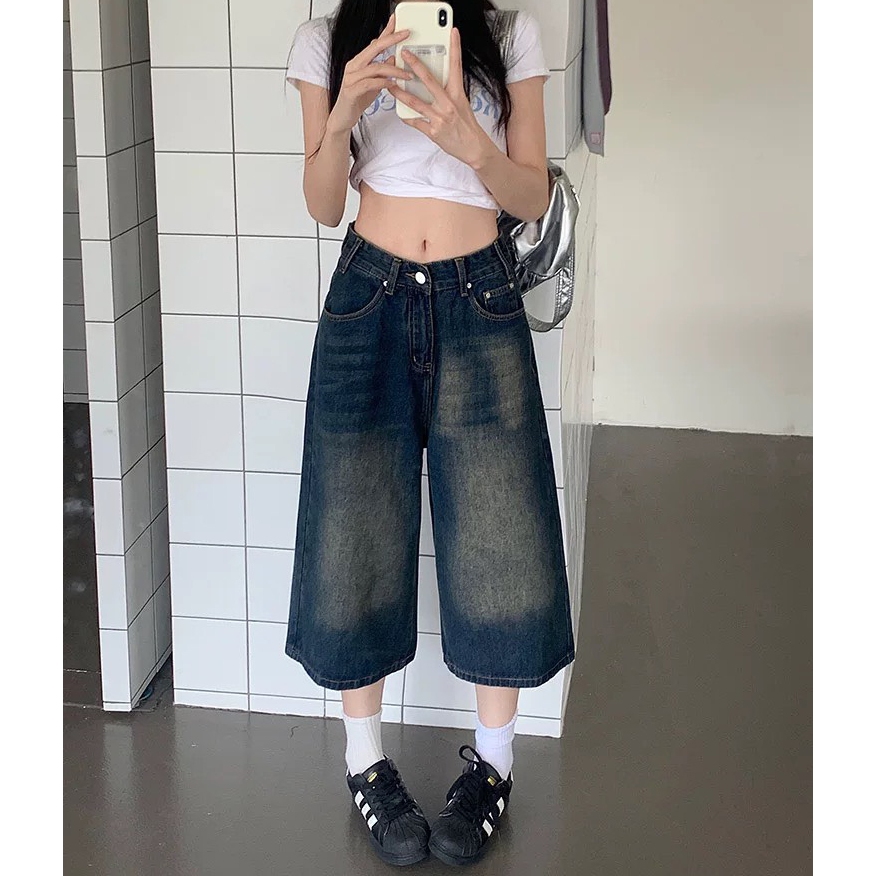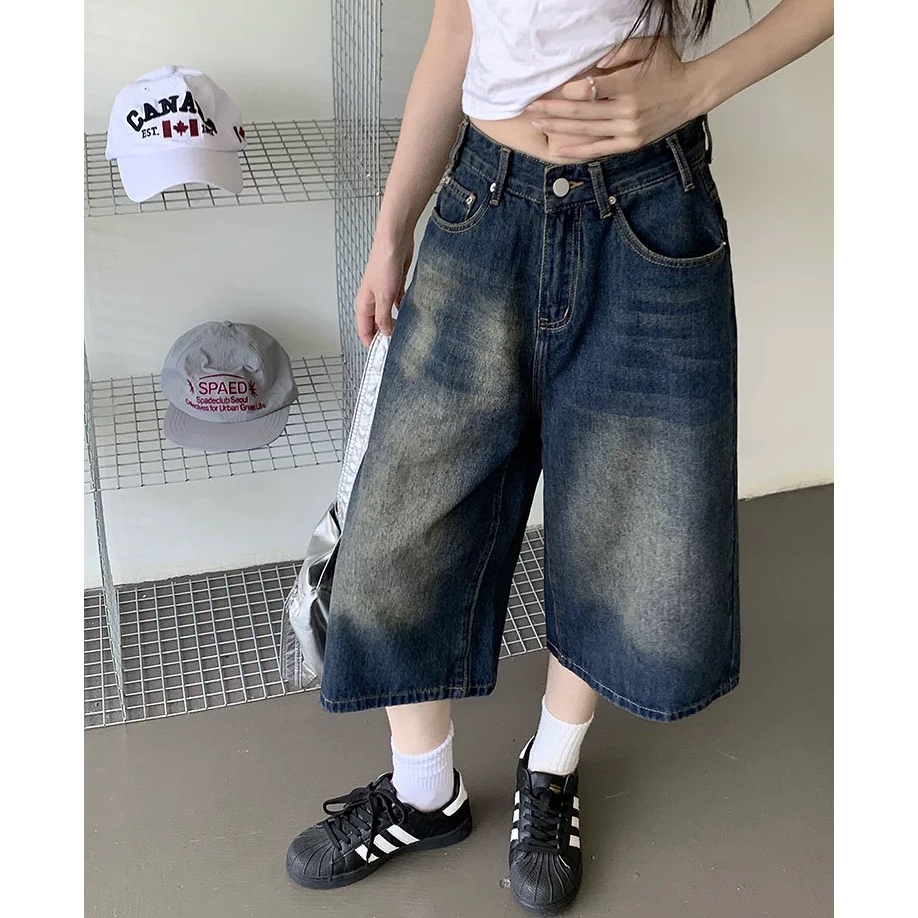 【K-2】美式復古 水洗刷色 七分牛仔褲 直筒 牛仔短褲 七分褲 牛仔七分褲 街頭 穿搭 短褲 褲子 Y2K【JD13】M|L|XL|XXLK-2 Fashionboy