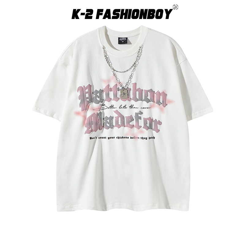 【K-2】BATTABON 發泡字體 軍牌項鍊 潮流短T 短袖上衣 T恤 寬鬆落肩 街頭 K2【J3802】白,M|白,L|白,XL|白,XXL|黑,M|黑,L|黑,XL|黑,XXLT-ShirtsK-2 Fashionboy