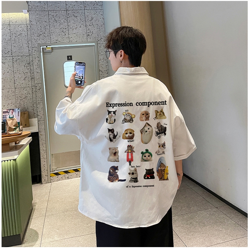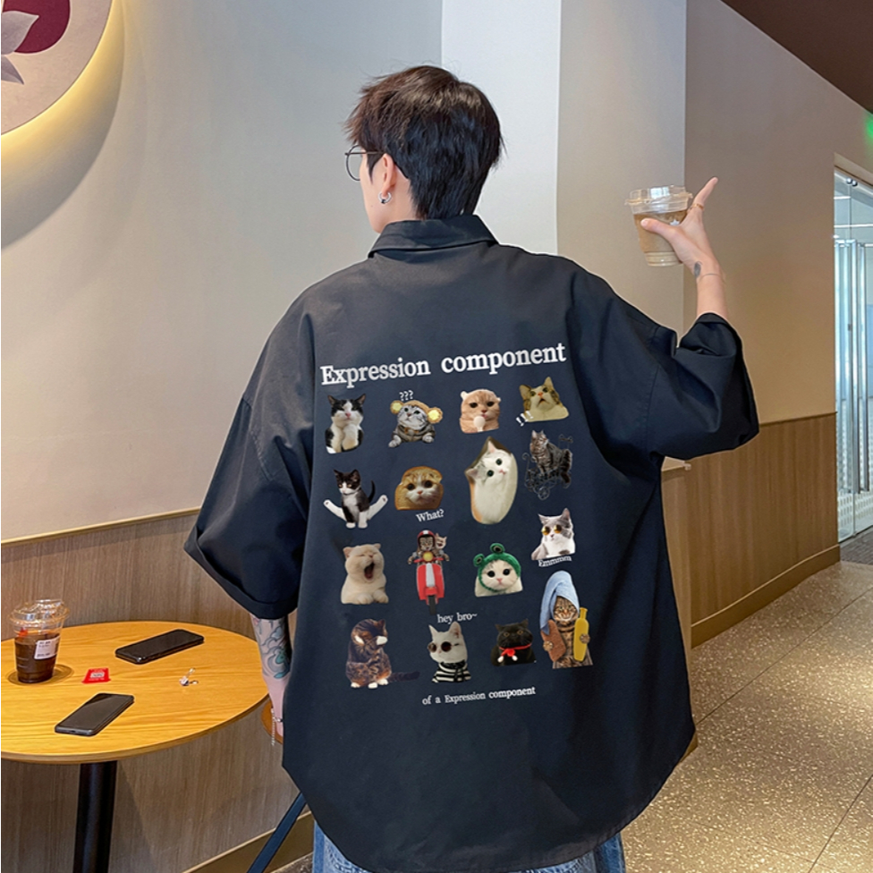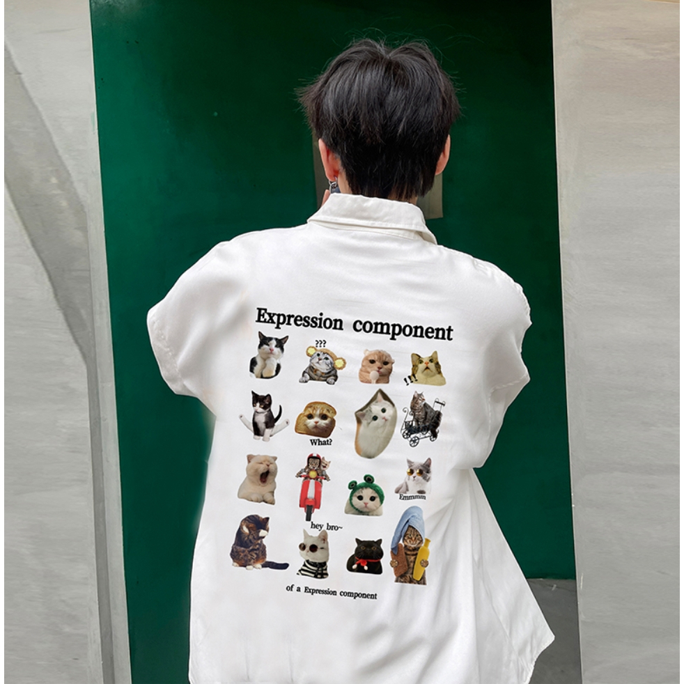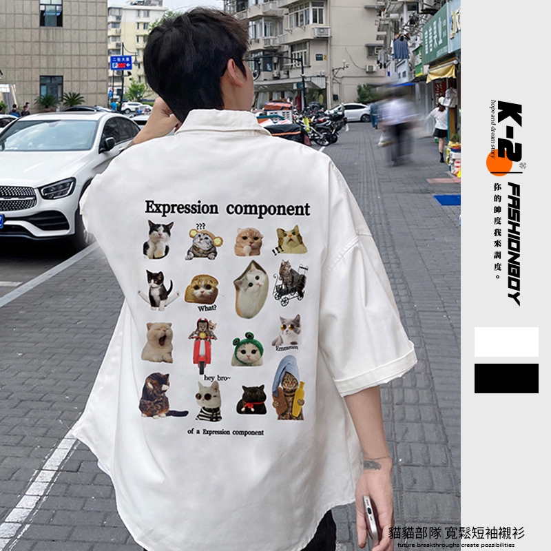 【K-2】CAT 可愛貓咪 短袖襯衫 小花貓 超萌 貓咪襯衫 寬鬆襯衫 貓 Y2K 復古襯衫 襯衫 K2【J9208】黑色,L|黑色,XL|白色,M|白色,L|白色,XL|黑色,MShirtsK-2 Fashionboy