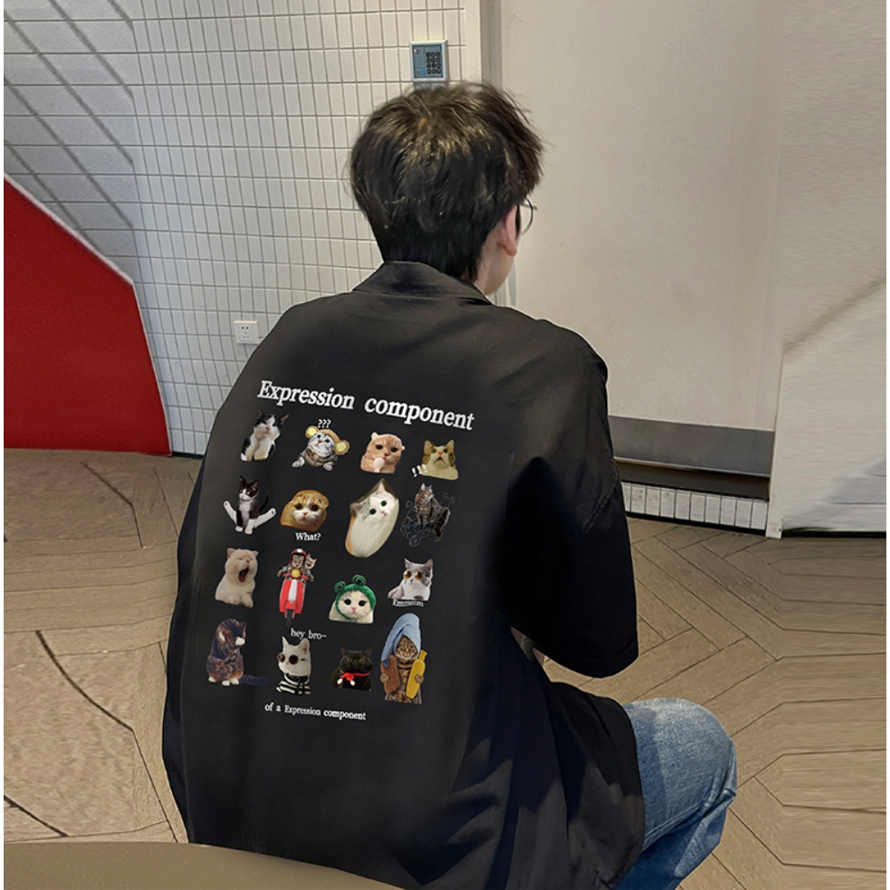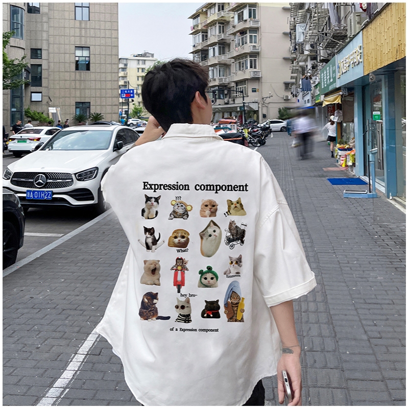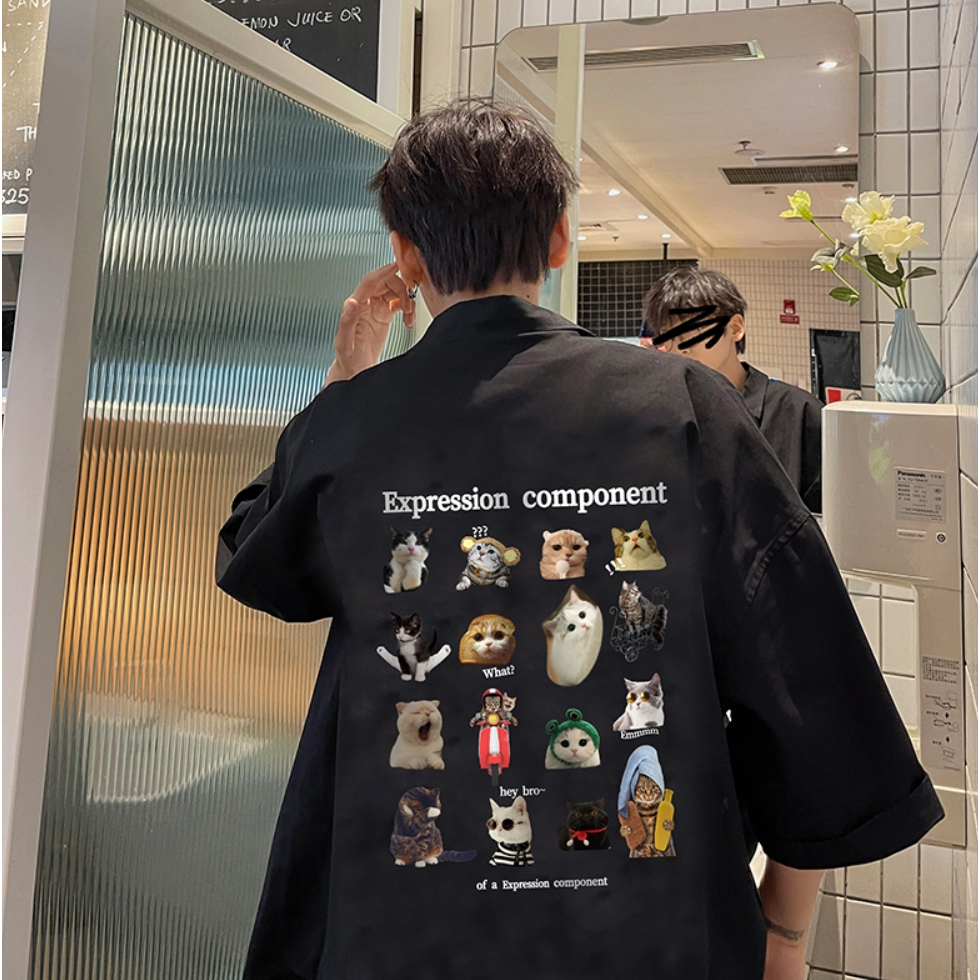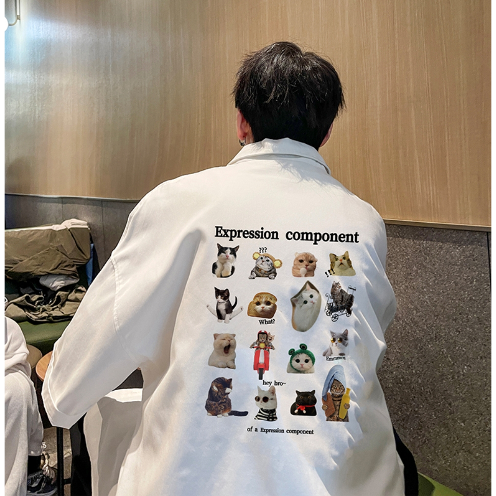 【K-2】CAT 可愛貓咪 短袖襯衫 小花貓 超萌 貓咪襯衫 寬鬆襯衫 貓 Y2K 復古襯衫 襯衫 K2【J9208】黑色,L|黑色,XL|白色,M|白色,L|白色,XL|黑色,MShirtsK-2 Fashionboy