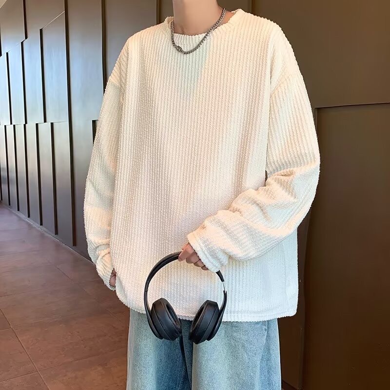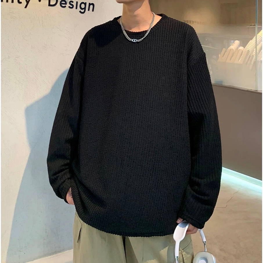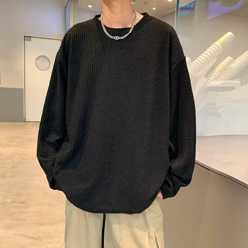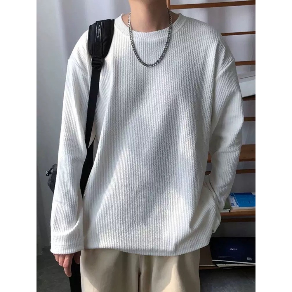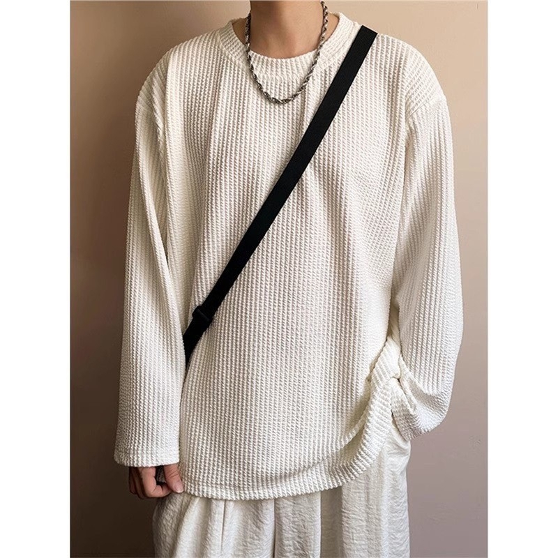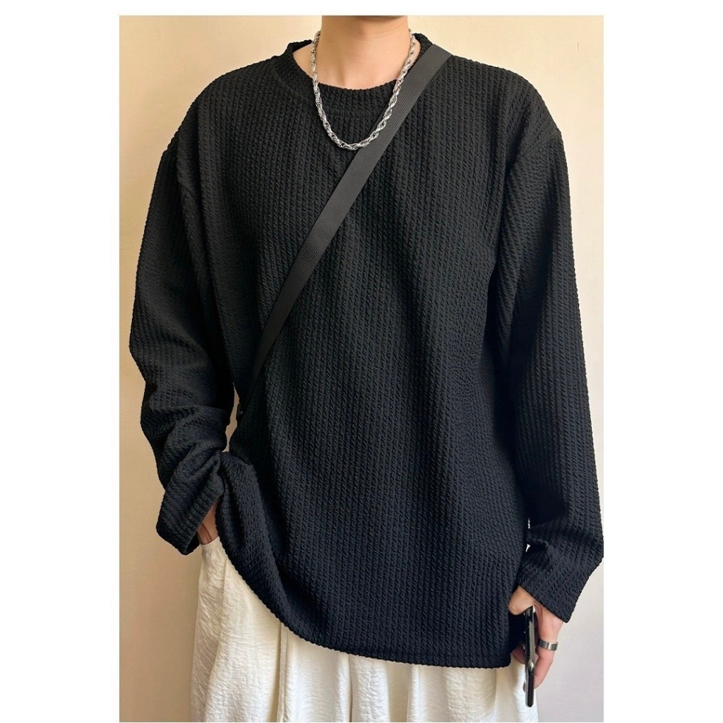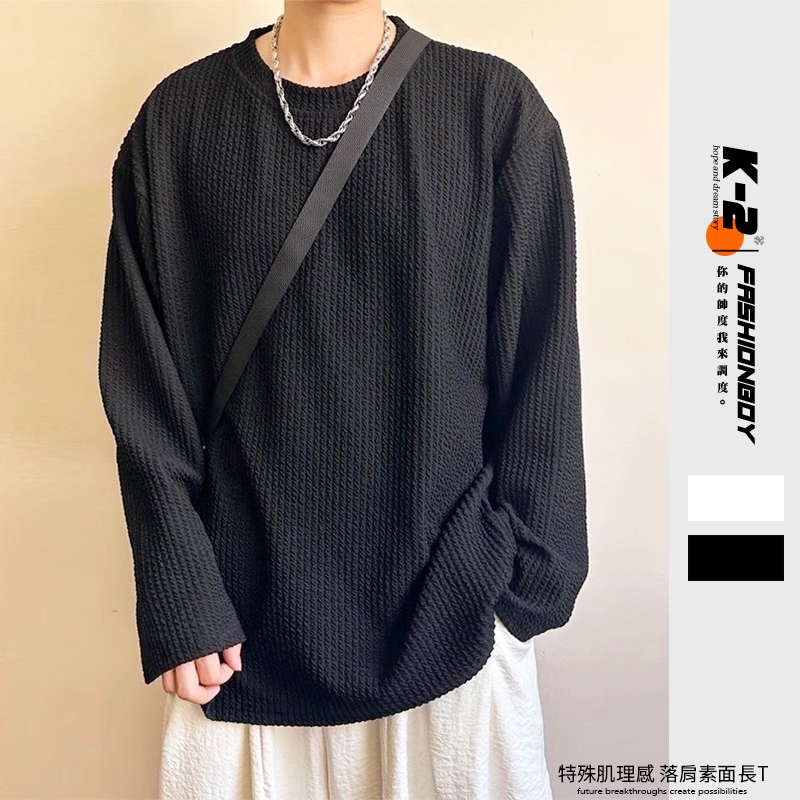 【K-2】冷淡風 特殊面料 肌理感 立體紋路 自然作皺 壓紋 寬鬆長T 素T 落肩 薄長T 長袖 男女 內搭【KN10】白色,M|白色,L|黑色,M|黑色,LT-ShirtsK-2 Fashionboy