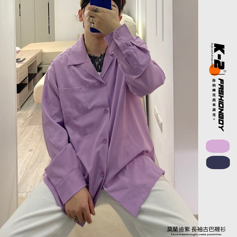 【K-2】古巴長袖襯衫 開襟 純色 紫色 襯衫 素面 古巴襯衫 抗皺襯衫 男女不拘 寬鬆 長袖襯衫 情侶 K2【KC6】莫蘭迪紫,M|深藍,M|莫蘭迪紫,L|深藍,LShirtsK-2 Fashionboy