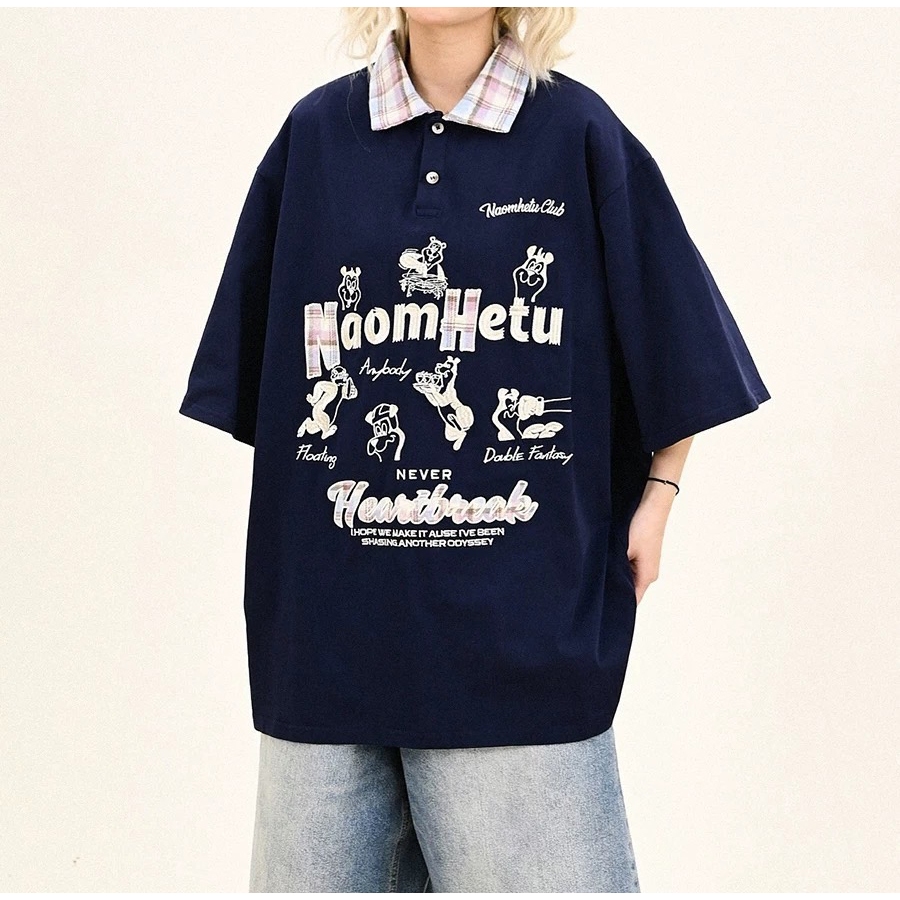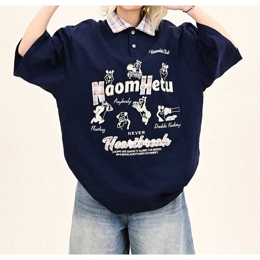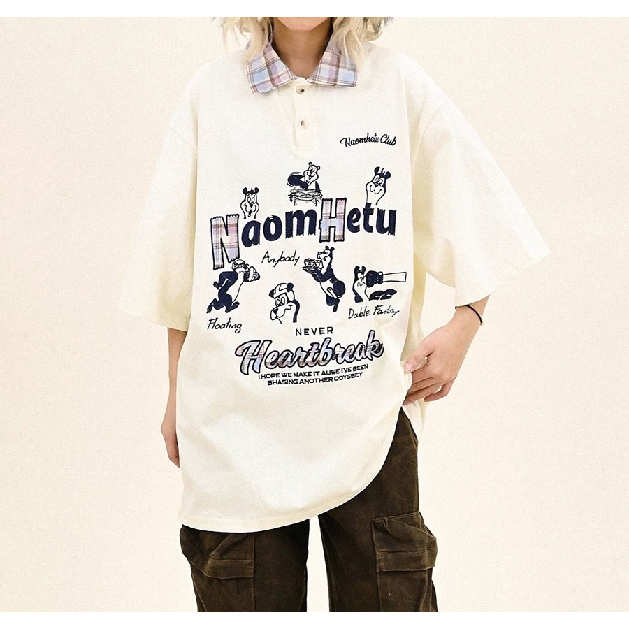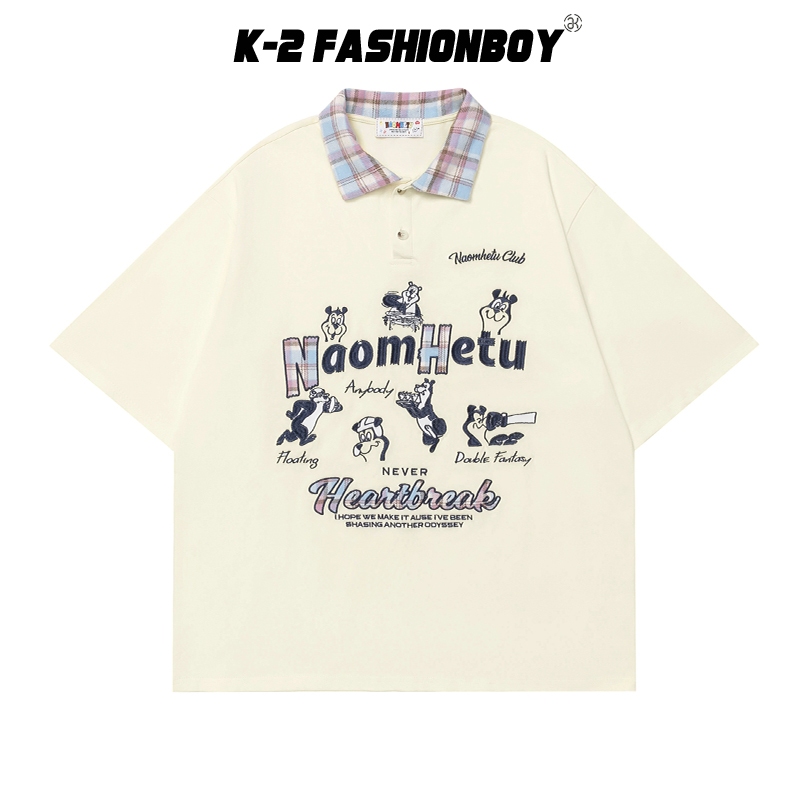 【K-2】NAOMHETU 可愛小熊 格紋撞色 手繪 塗鴉 卡通 POLO衫 短袖POLO衫 復古 短T K【JH39】杏色,M|杏色,L|杏色,XL|深藍色,M|深藍色,L|深藍色,XLPolo ShirtsK-2 Fashionboy