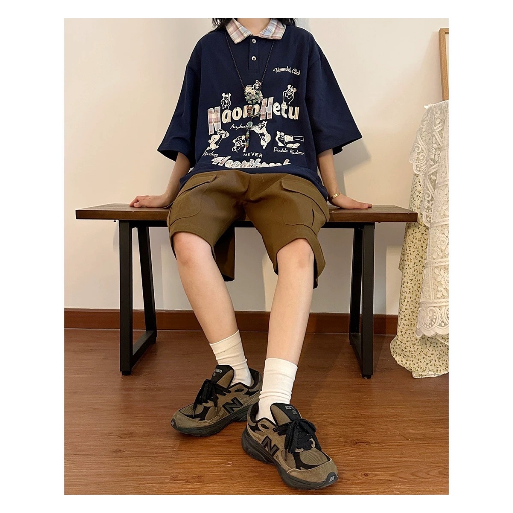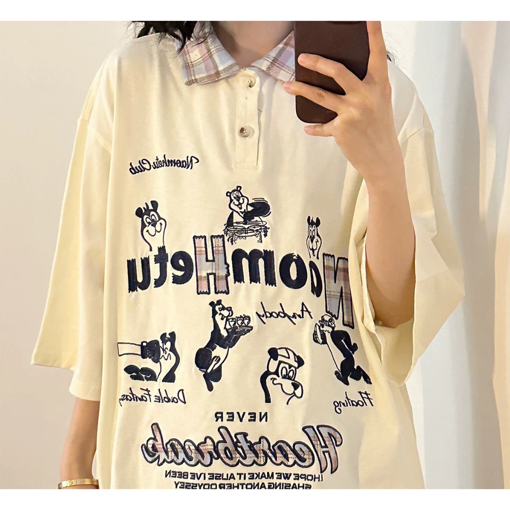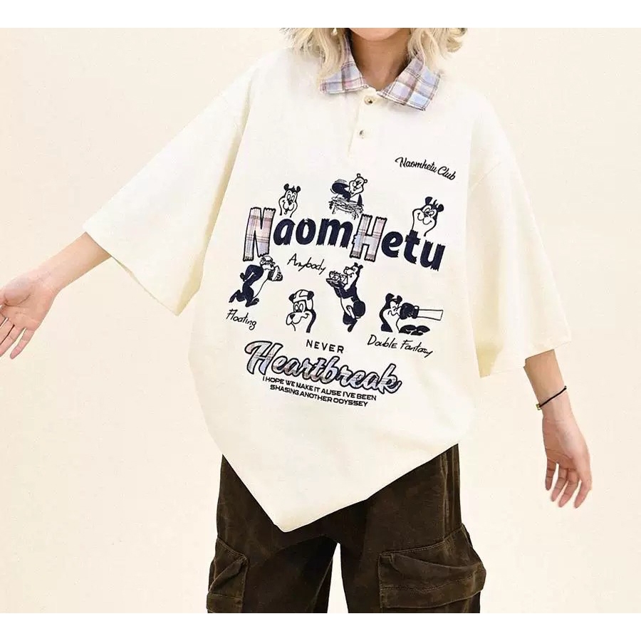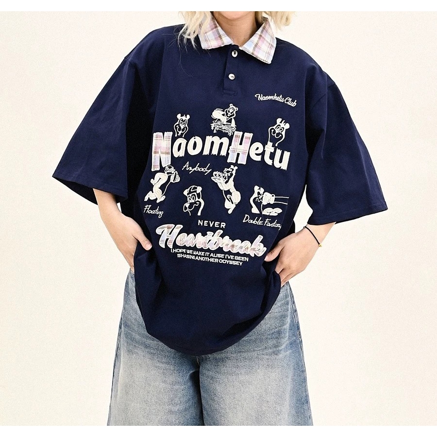 【K-2】NAOMHETU 可愛小熊 格紋撞色 手繪 塗鴉 卡通 POLO衫 短袖POLO衫 復古 短T K【JH39】杏色,M|杏色,L|杏色,XL|深藍色,M|深藍色,L|深藍色,XLPolo ShirtsK-2 Fashionboy