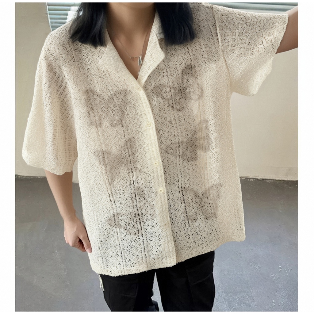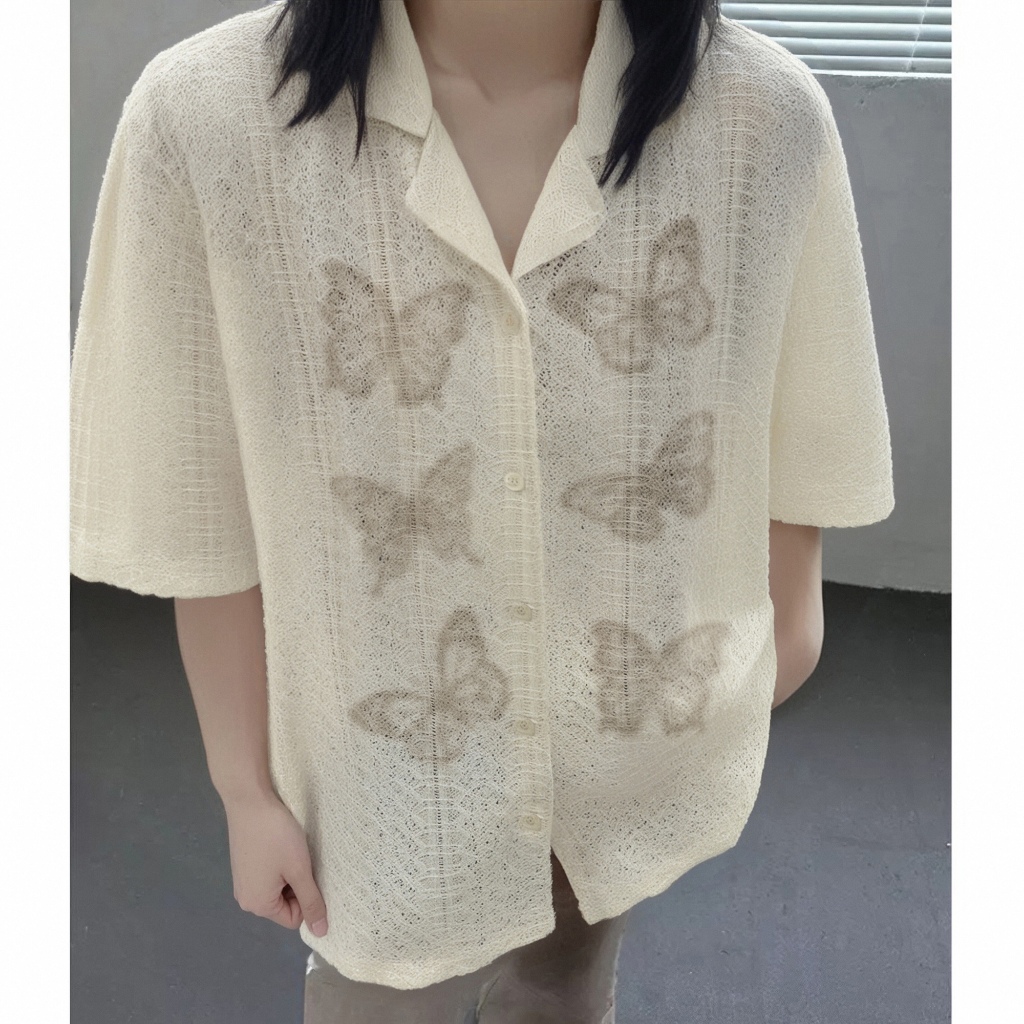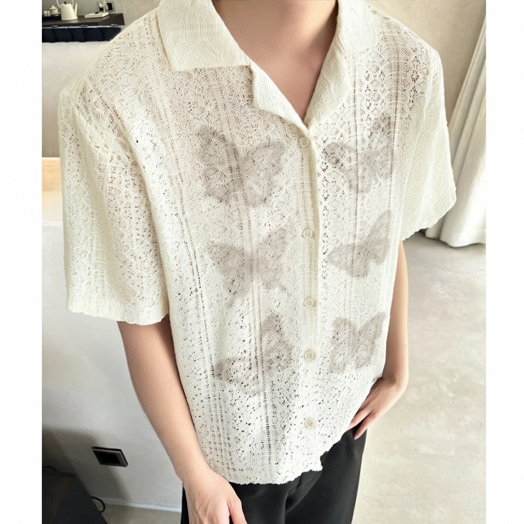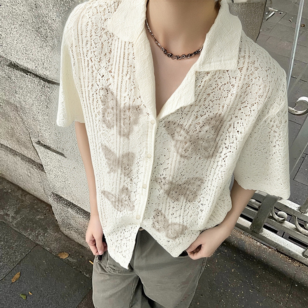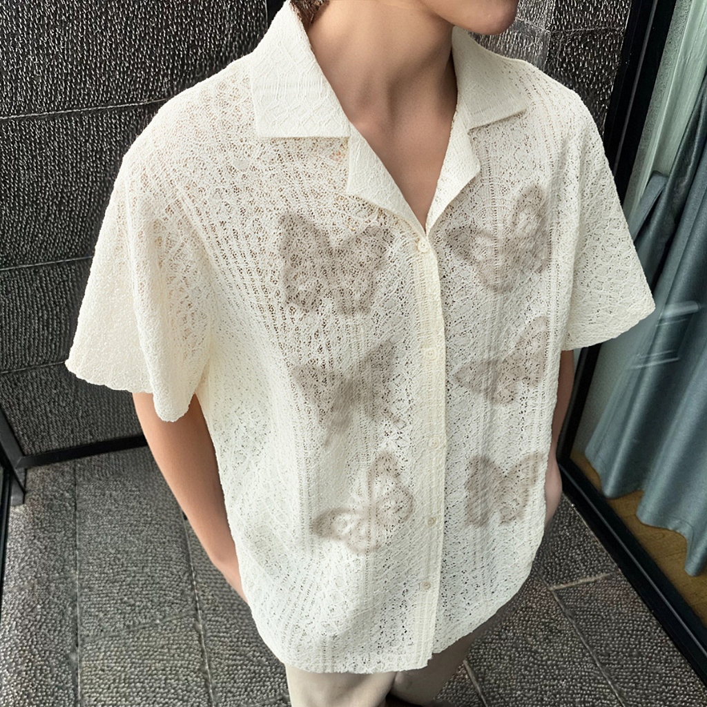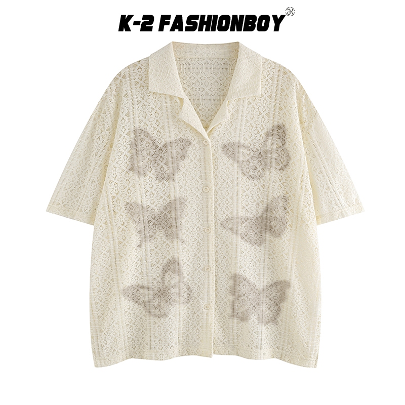 【K-2】簍空花紋 蝴蝶印花 花襯衫 古巴領 短袖襯衫 穿搭 男女不拘 歐巴 寬鬆 街頭 個性【JMC035】M|L|XLShirtsK-2 Fashionboy