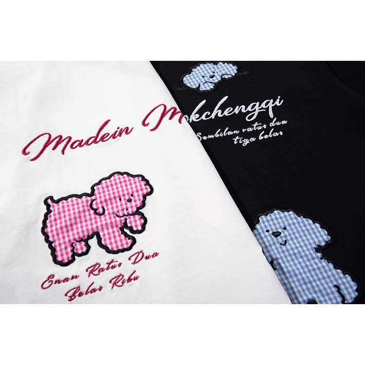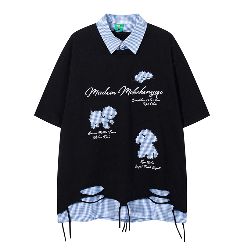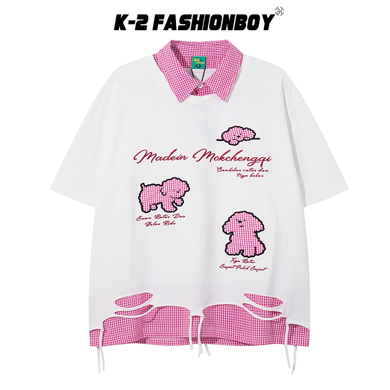 【K-2】假兩件格紋短T 可愛小狗 貴賓 小格子 刺繡 草寫英文 格紋 短袖 破壞下擺 破T 假兩件【JJJ2505】白色,M|白色,L|白色,XL|白色,XXL|黑色,M|黑色,L|黑色,XL|黑色,XXLT-ShirtsK-2 Fashionboy
