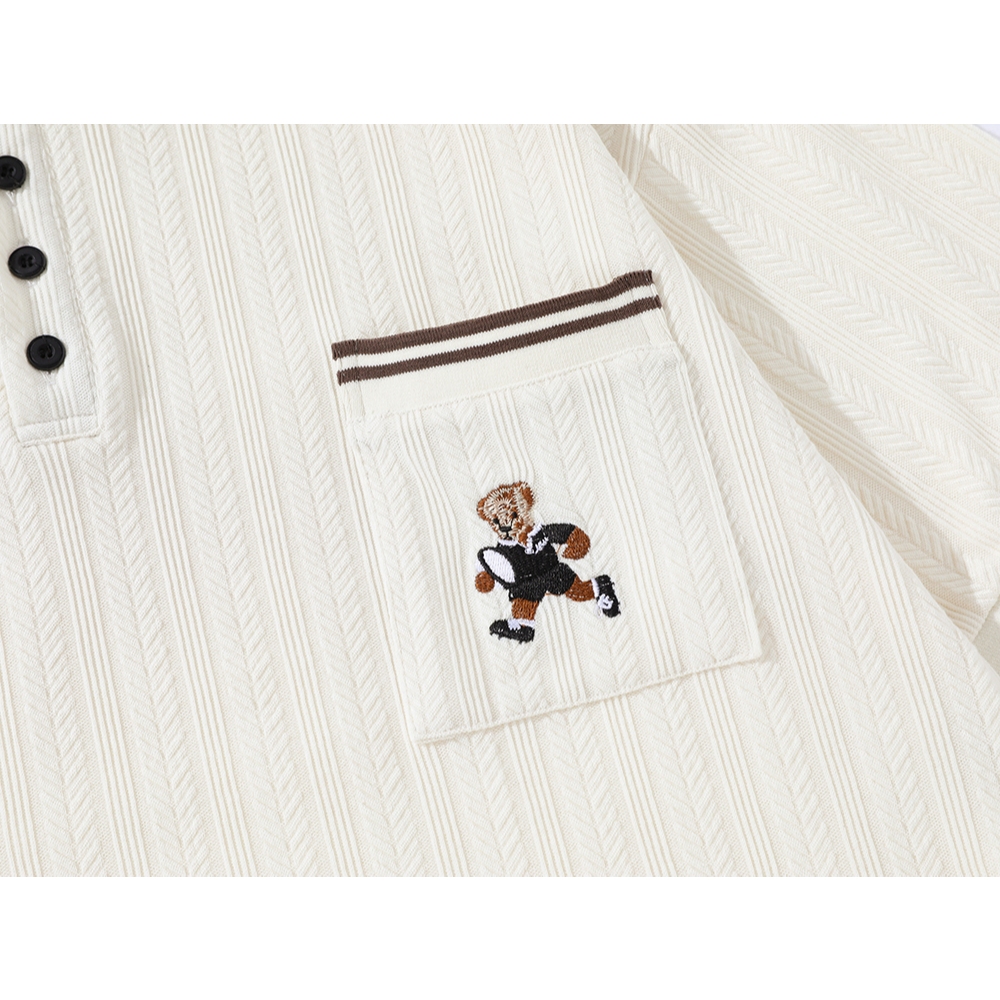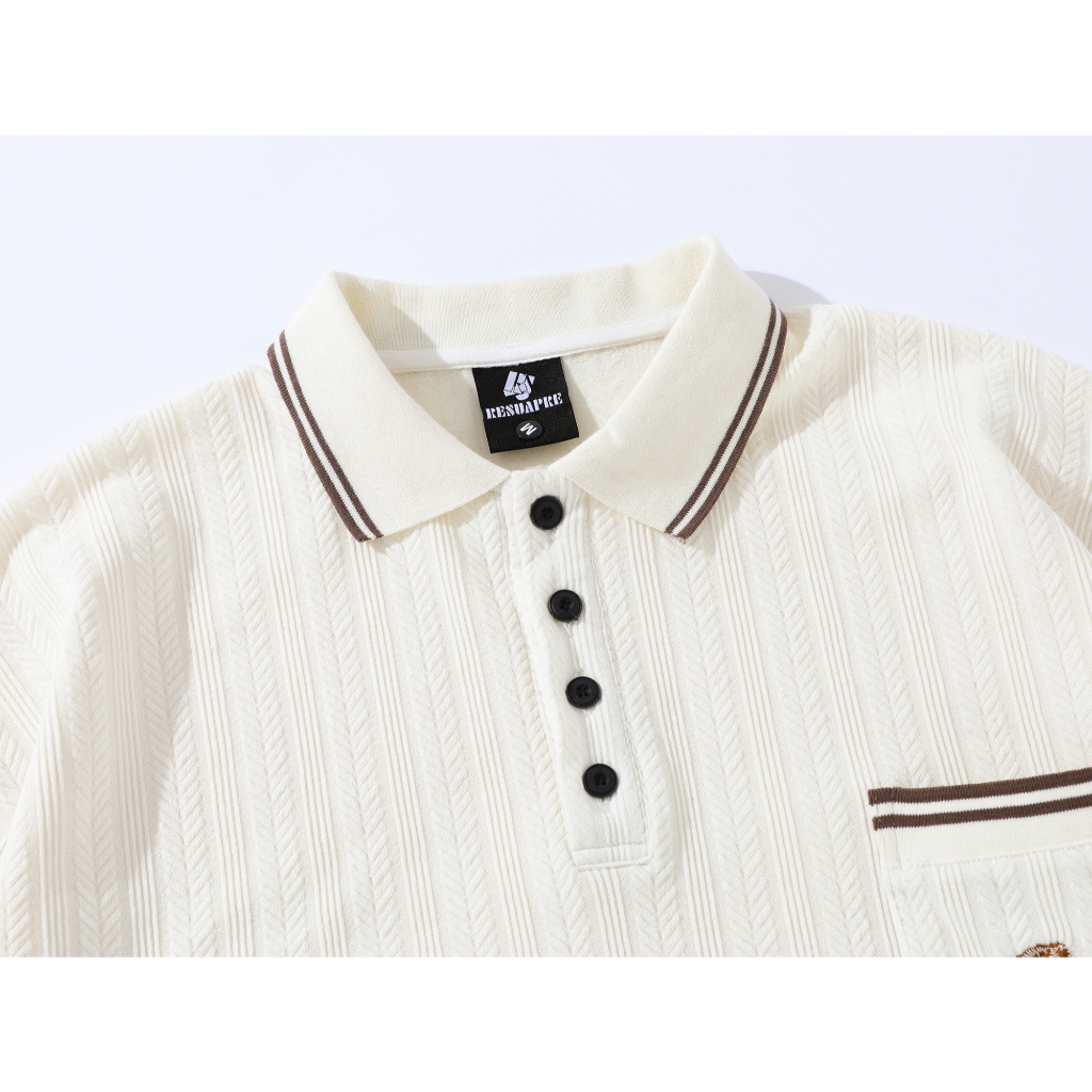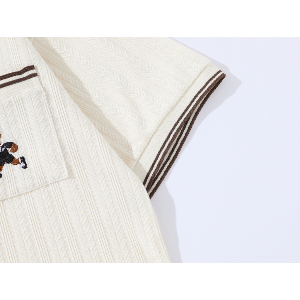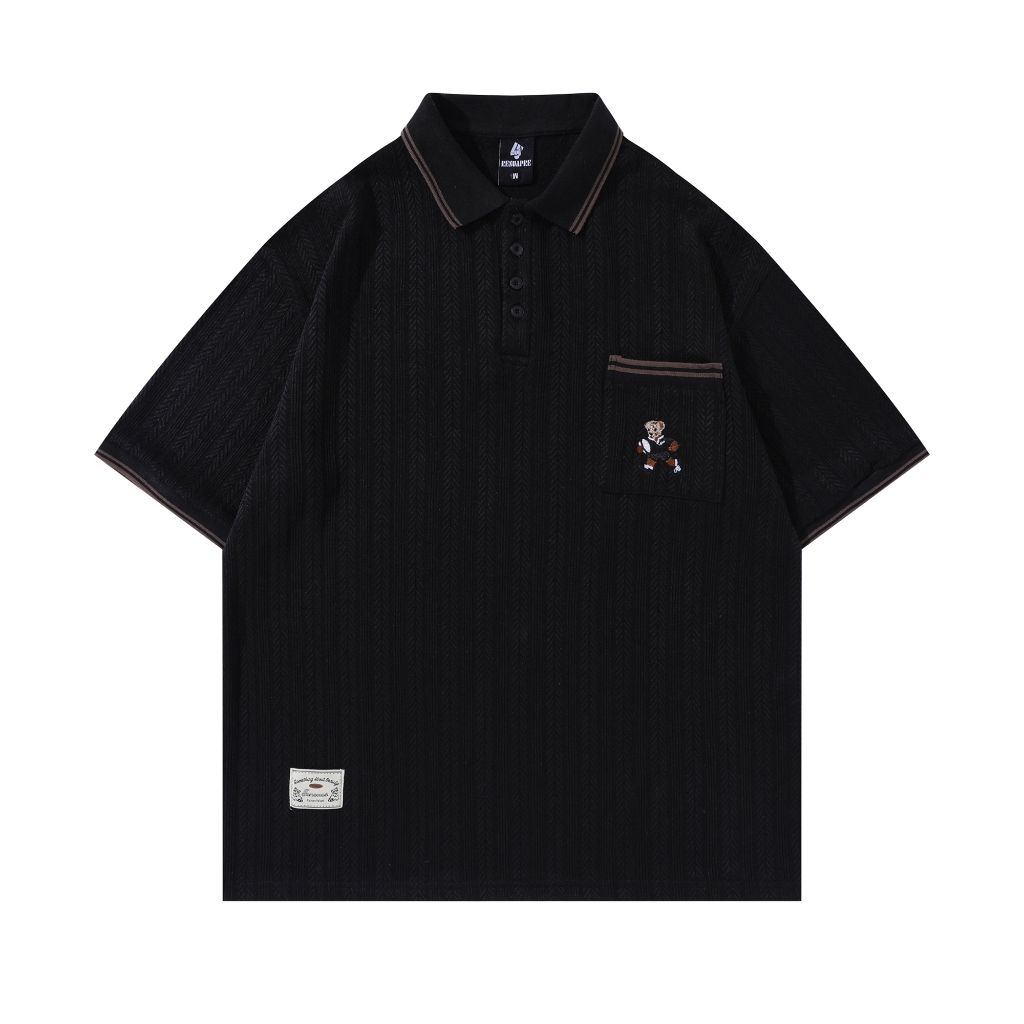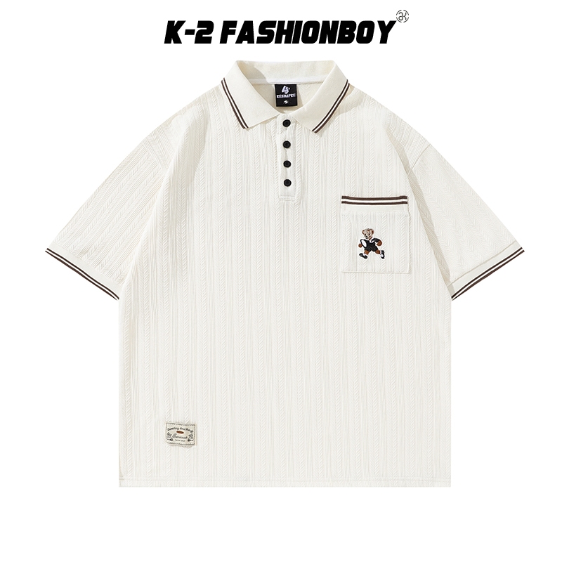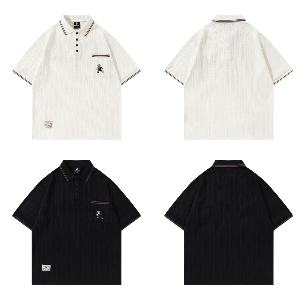 【K-2】小熊 刺繡 設計 口袋 短袖上衣 針織 POLO衫 排扣 麻花 造型 文青 韓系 穿搭【J820】黑,M|黑,L|黑,XL|白,M|白,L|白,XLPolo ShirtsK-2 Fashionboy