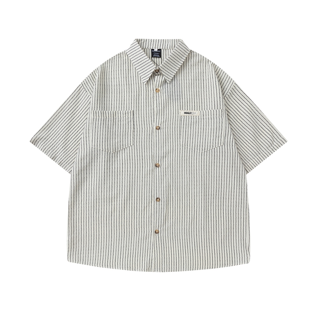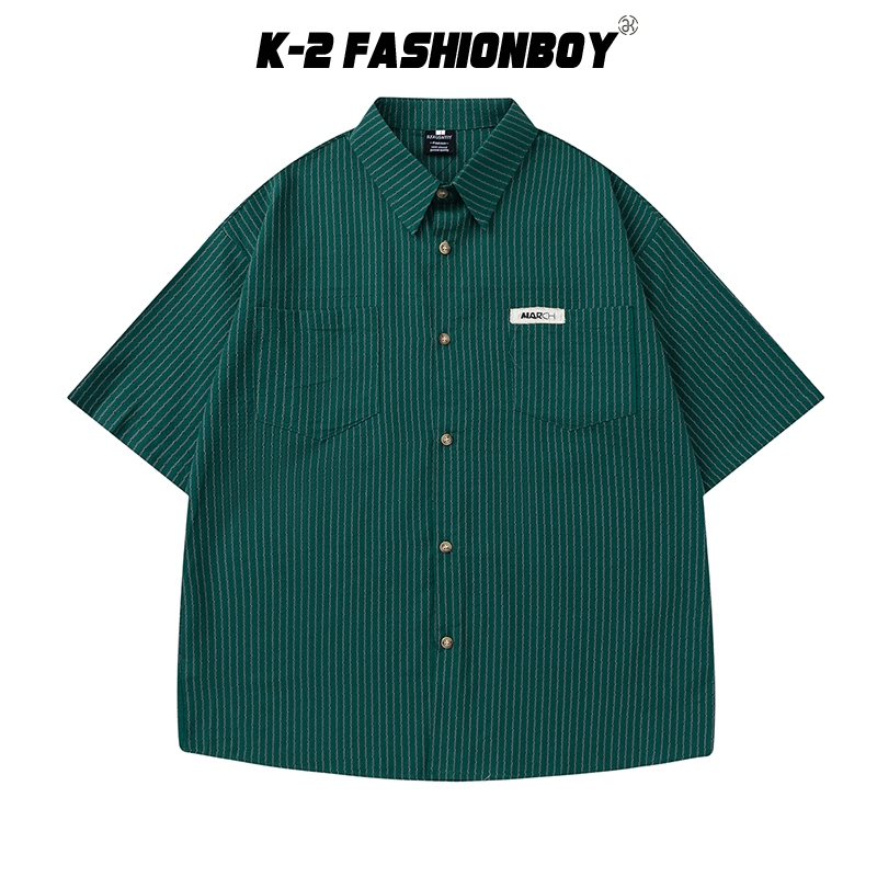 【K-2】細條紋 簡約 雙口袋 小標 條紋襯衫 短袖襯衫 穿搭 寬鬆落肩 男女不拘 街頭 四季【J10058】黑,M|黑,L|黑,XL|白,M|白,L|白,XL|綠,M|綠,L|綠,XLShirtsK-2 Fashionboy