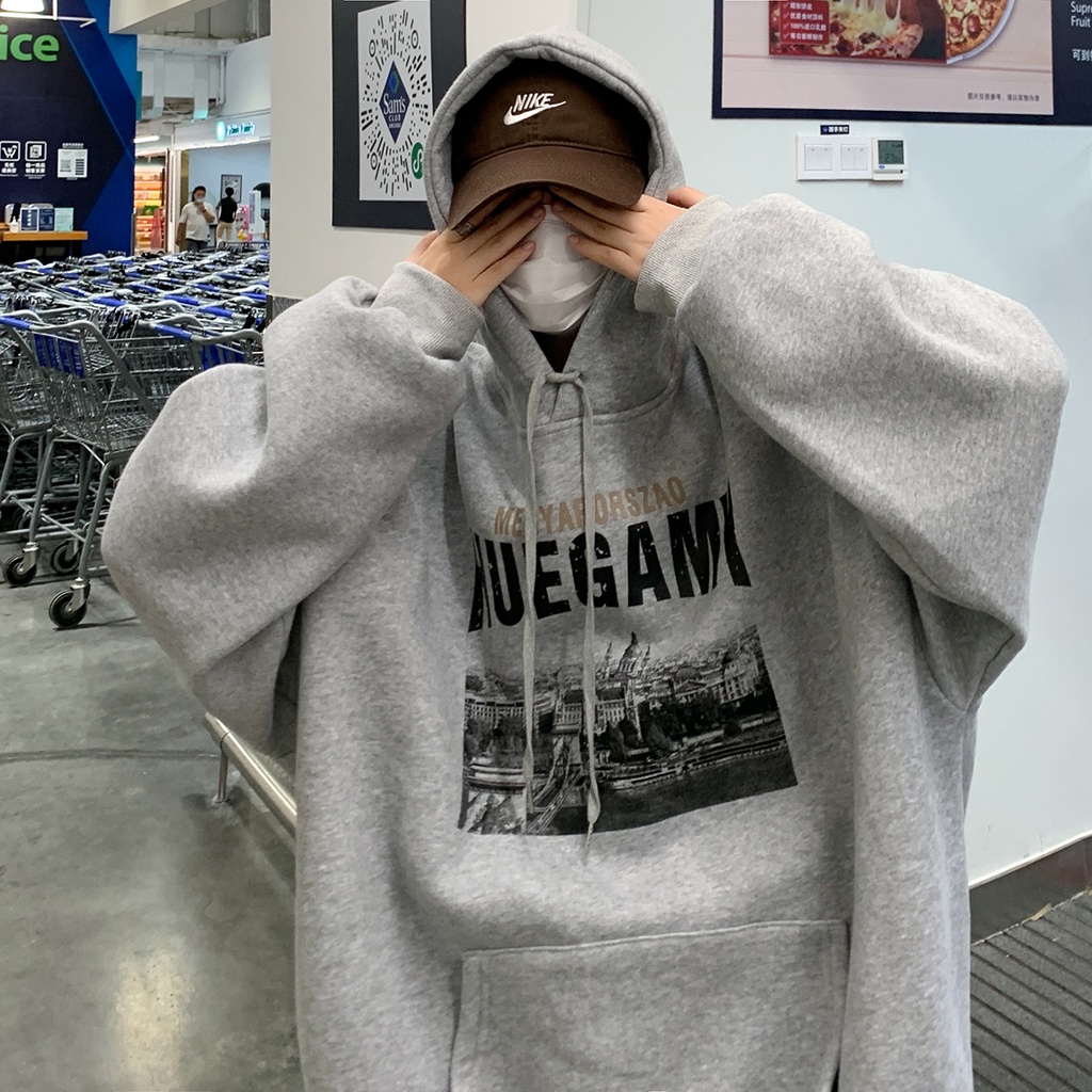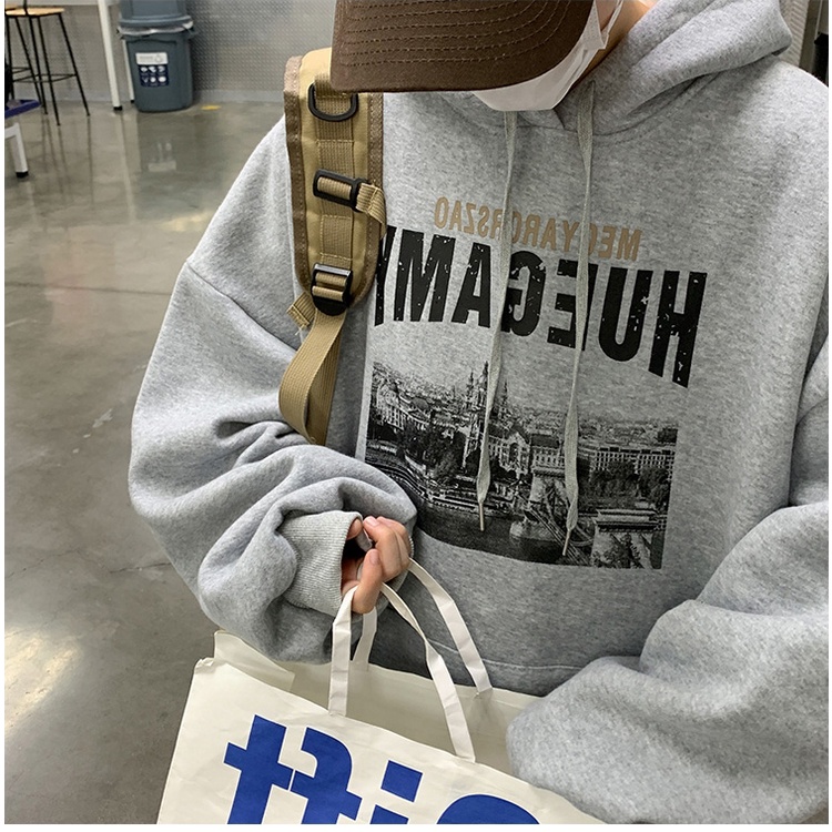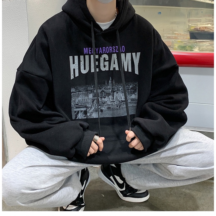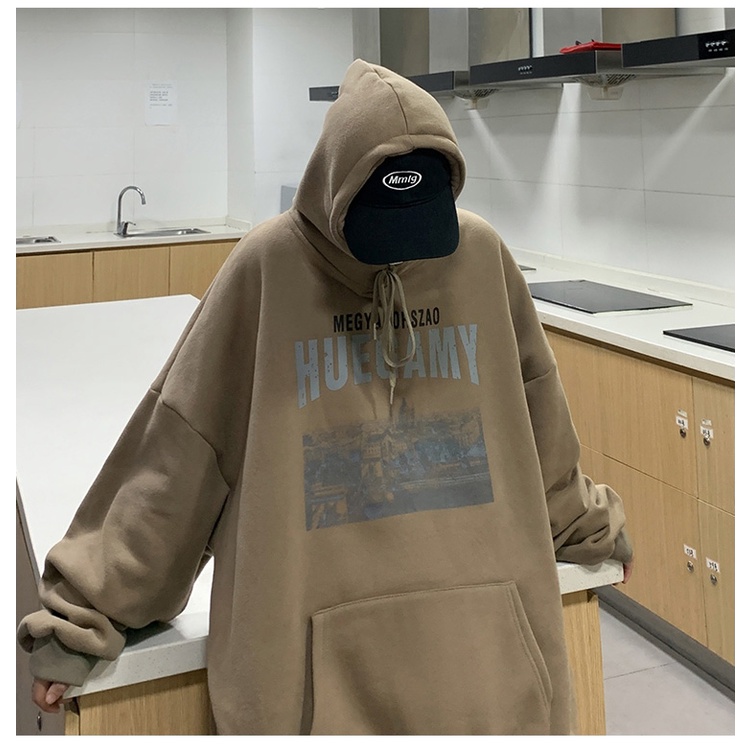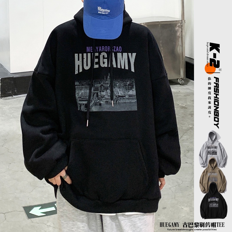 【K-2】HUEGAMY 巴黎建築 刷舊 刷毛帽T 寬鬆帽T 口袋帽T 情侶 上衣 落肩【B9128】卡其色,L|黑色,M|淺灰色,L|黑色,L|淺灰色,M|卡其色,XL|淺灰色,XL|卡其色,M|黑色,XLHoodiesK-2 Fashionboy
