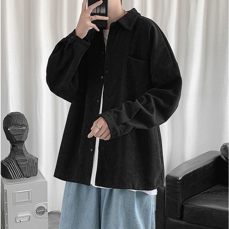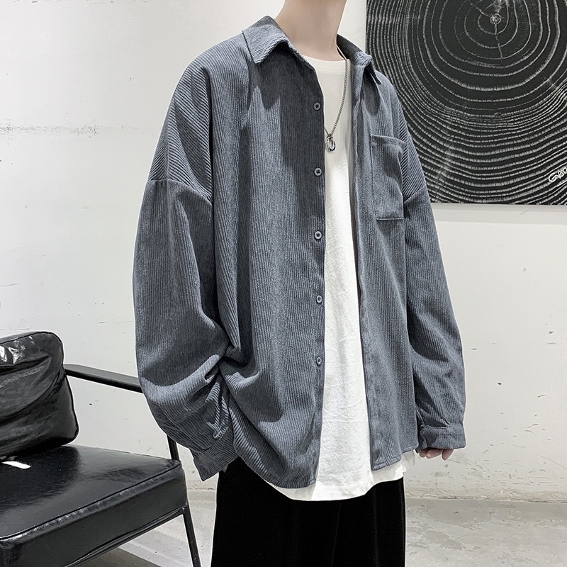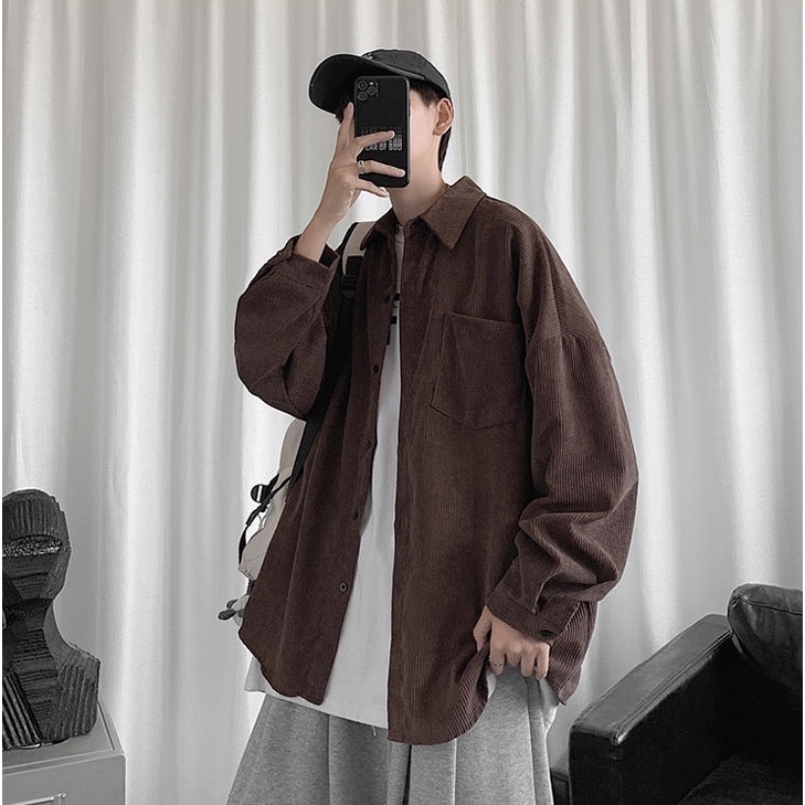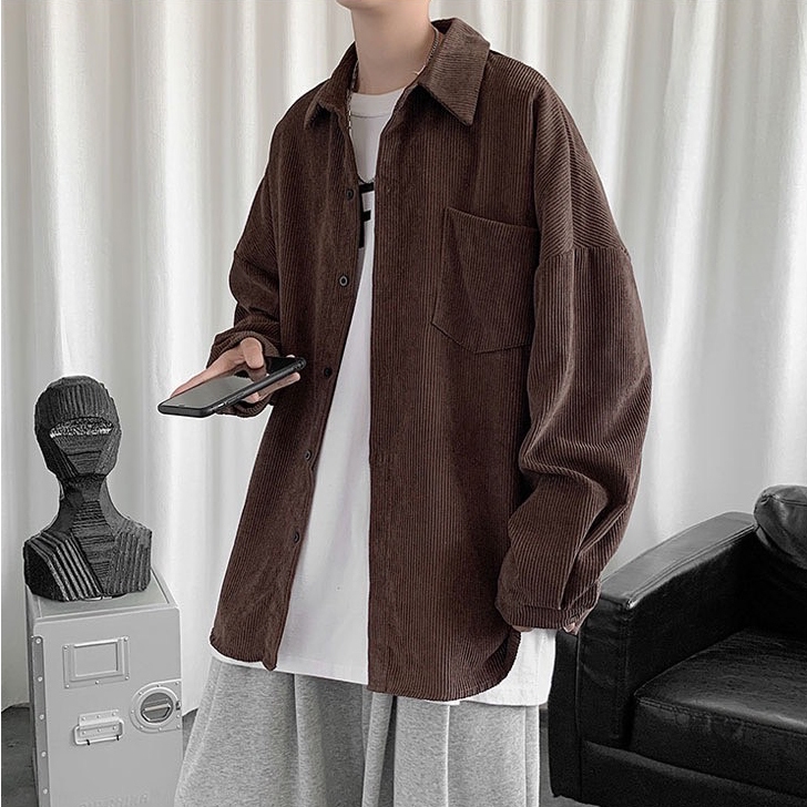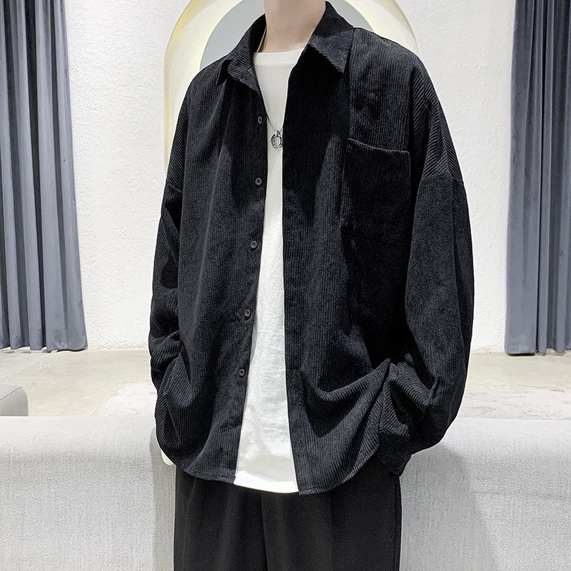 【K-2】CITYBOY 日系 古著 燈芯絨 襯衫 素面襯衫 寬鬆襯衫 口袋襯衫 燈芯絨襯衫 長袖襯衫【KC601】杏色,M|杏色,L|咖色,M|咖色,L|深灰色,M|深灰色,L|黑色,M|黑色,LShirtsK-2 Fashionboy