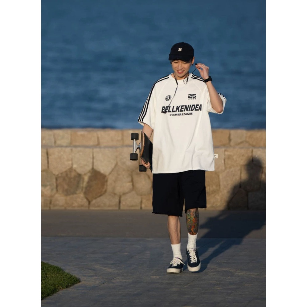 【K-2】BELLKENIDEA 數字25 休閒 運動 賽車風 寬鬆短T 短袖上衣 穿搭 情侶 落肩【H7011】黑,M|黑,L|黑,XL|黑,XXL|白,M|白,L|白,XL|白,XXLT-ShirtsK-2 Fashionboy