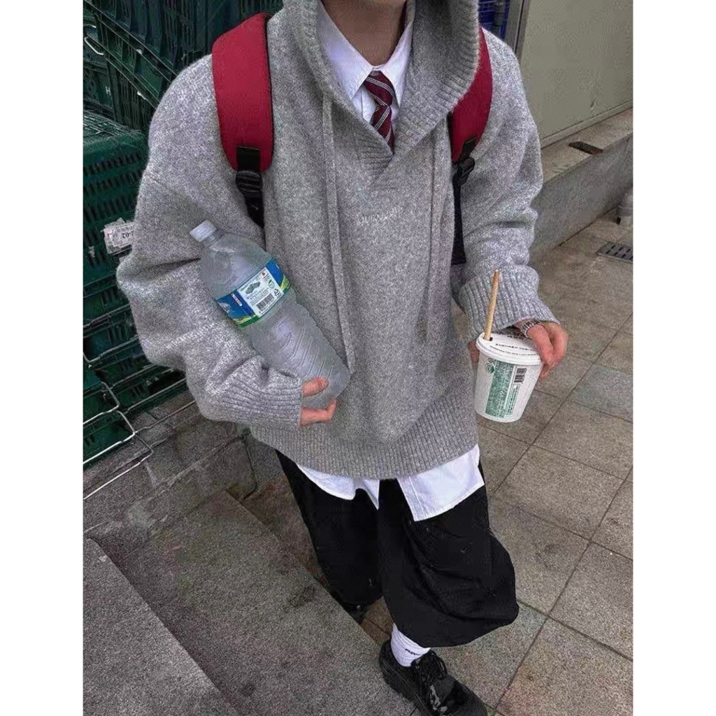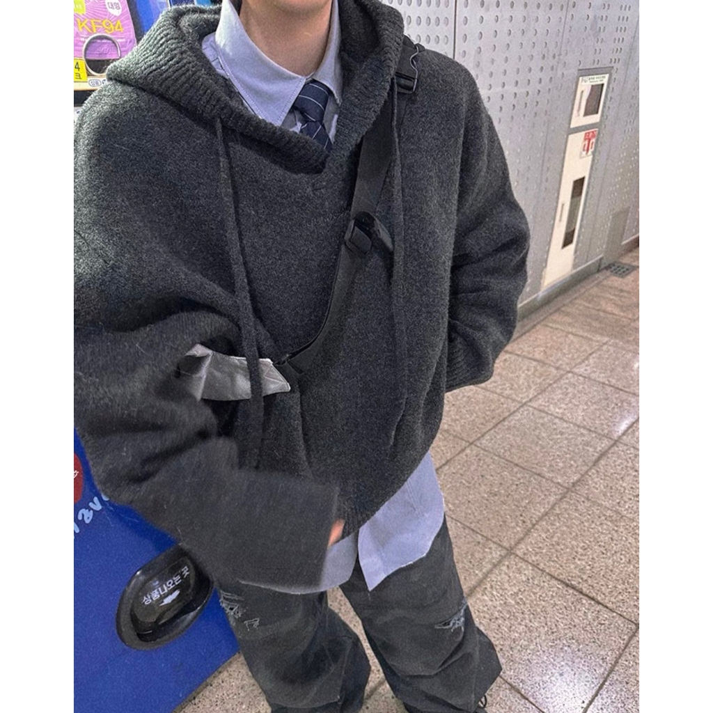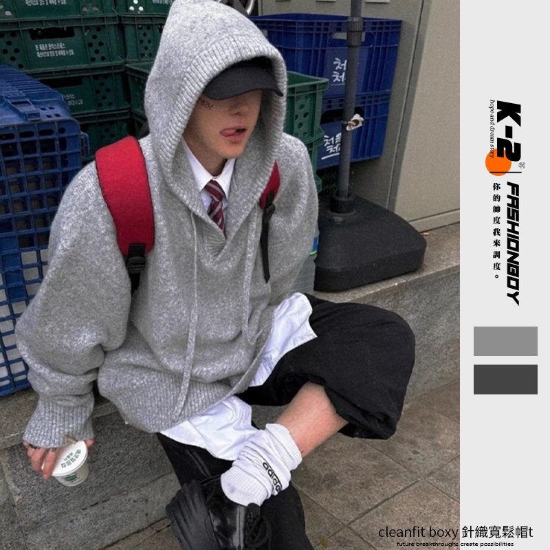 【K-2】cleanfit boxy 針織帽T V領毛衣 短寬版帽T 針織毛衣 寬鬆帽T 短版帽T 帽T【JD569】淺灰色,M|淺灰色,L|深灰色,M|深灰色,LHoodiesK-2 Fashionboy