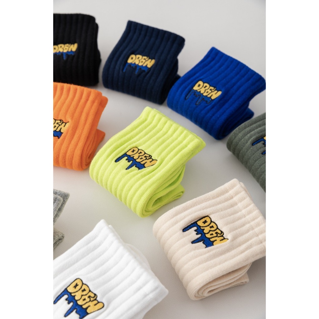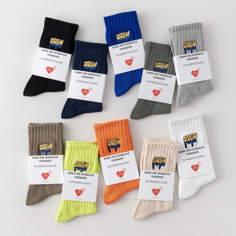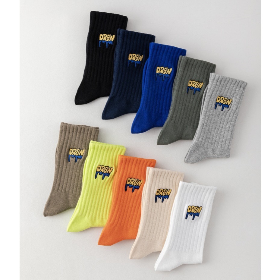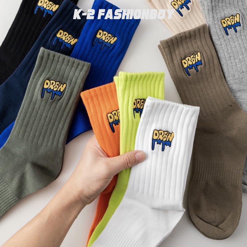 【K-2】美式塗鴉 刺繡襪 學生襪 運動襪 棉襪 白襪 黑襪 長筒襪 中筒襪 男襪 女襪 襪子 除臭襪 K【KM166】灰色|螢光綠|橘色|駝色|藏青|米色|綠色|白色|黑色|克萊因藍K-2 Fashionboy