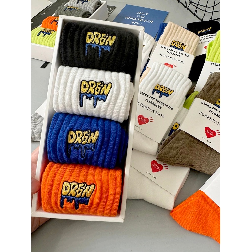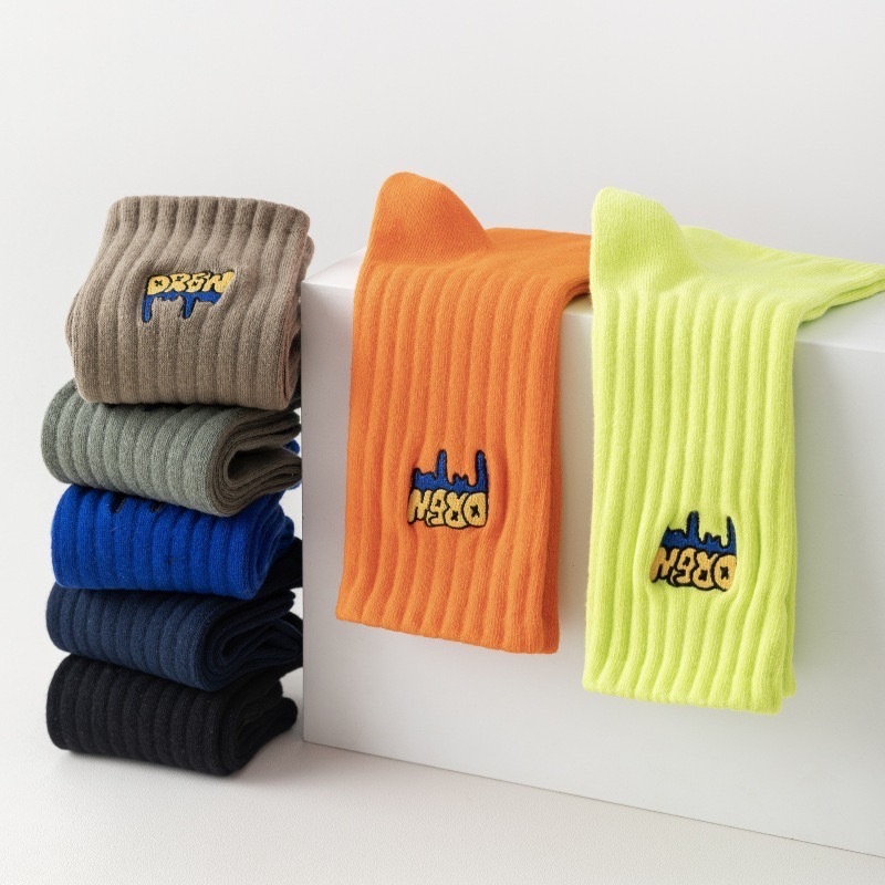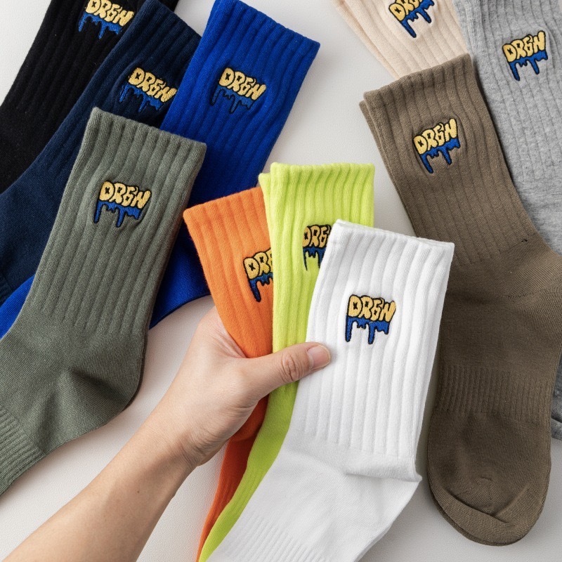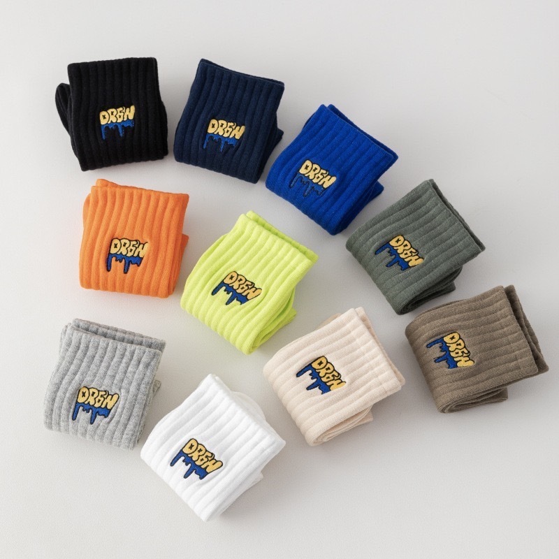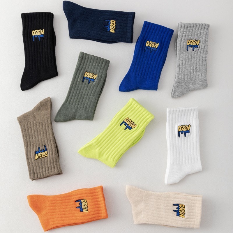 【K-2】美式塗鴉 刺繡襪 學生襪 運動襪 棉襪 白襪 黑襪 長筒襪 中筒襪 男襪 女襪 襪子 除臭襪 K【KM166】灰色|螢光綠|橘色|駝色|藏青|米色|綠色|白色|黑色|克萊因藍K-2 Fashionboy