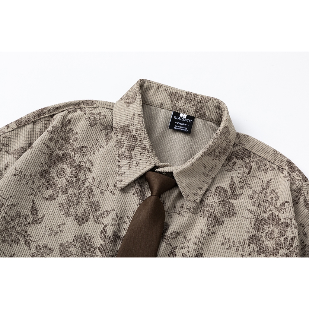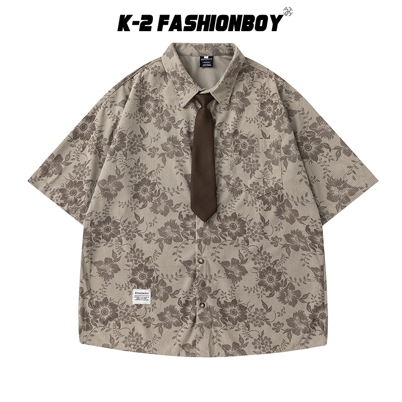 【K-2】滿版 復古 花襯衫 印花 附領帶 口袋襯衫 短袖襯衫 穿搭 情侶 古著 寬鬆落肩 K2【J10054】淺咖,M|淺咖,L|淺咖,XL|深咖,M|深咖,L|深咖,XLShirtsK-2 Fashionboy