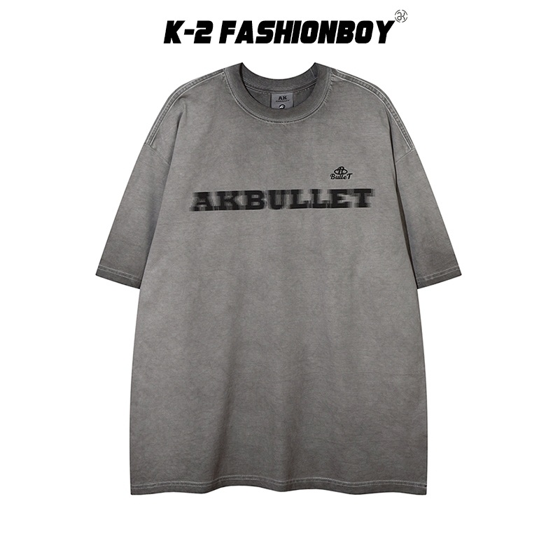 【K-2】AKBULLET 視覺效果 設計 模糊字體 水洗短T 短袖上衣 穿搭 男女不拘 簡約 基本【H24115】黑,M|黑,L|黑,XL|黑,XXL|灰,M|灰,L|灰,XL|灰,XXLT-ShirtsK-2 Fashionboy