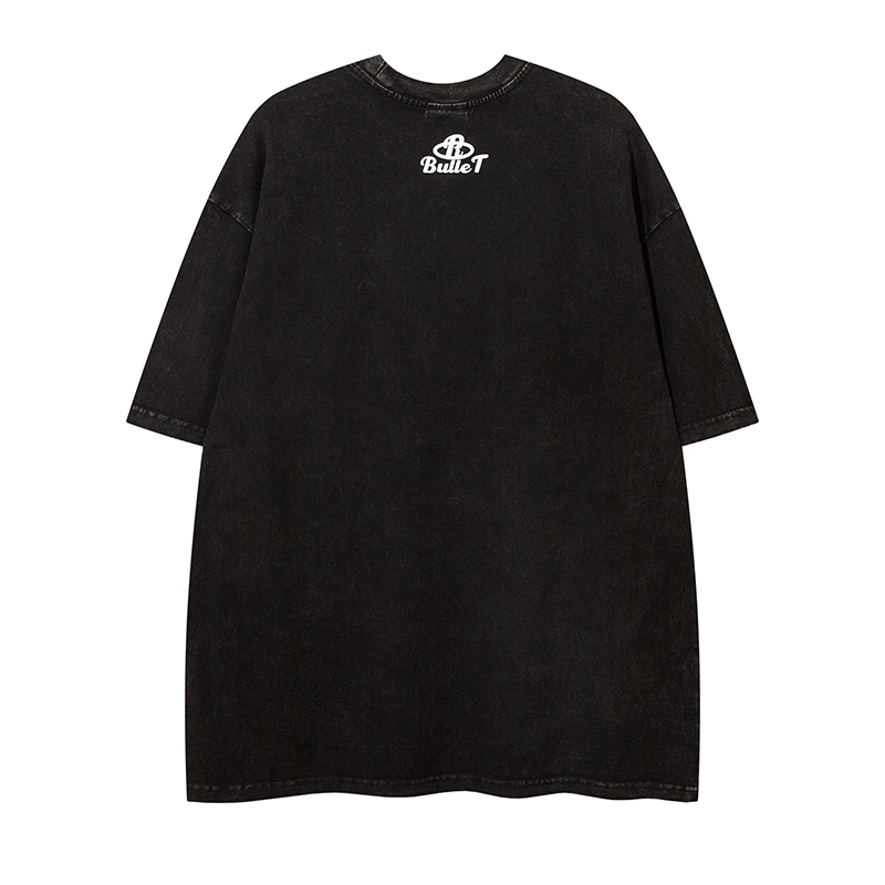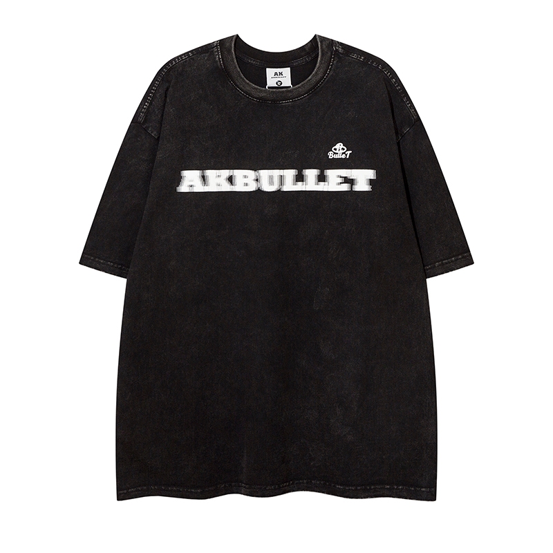 【K-2】AKBULLET 視覺效果 設計 模糊字體 水洗短T 短袖上衣 穿搭 男女不拘 簡約 基本【H24115】