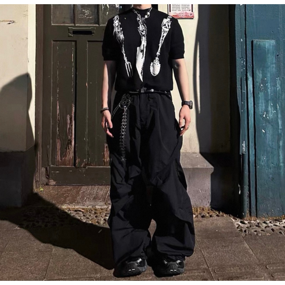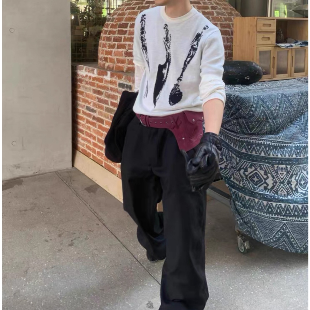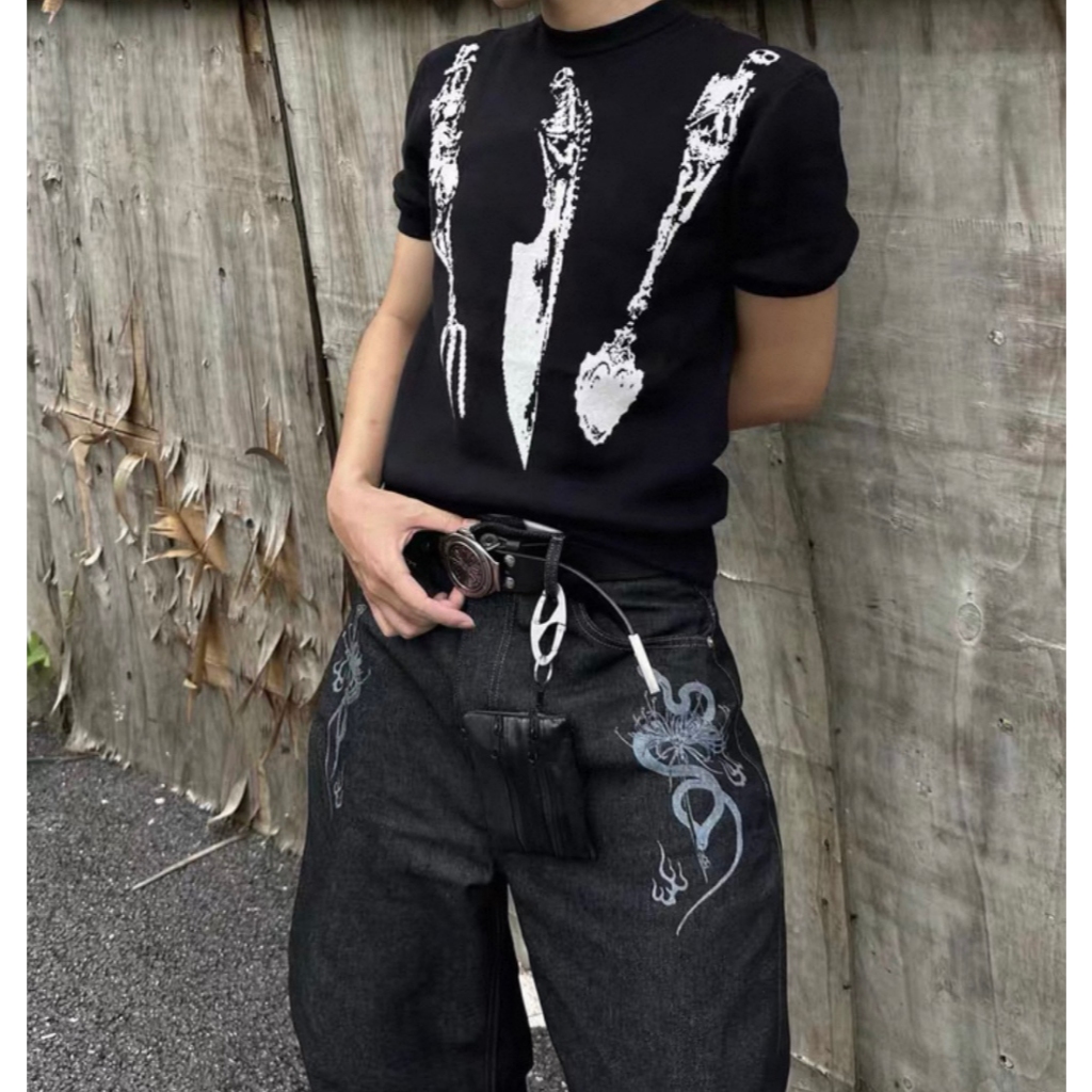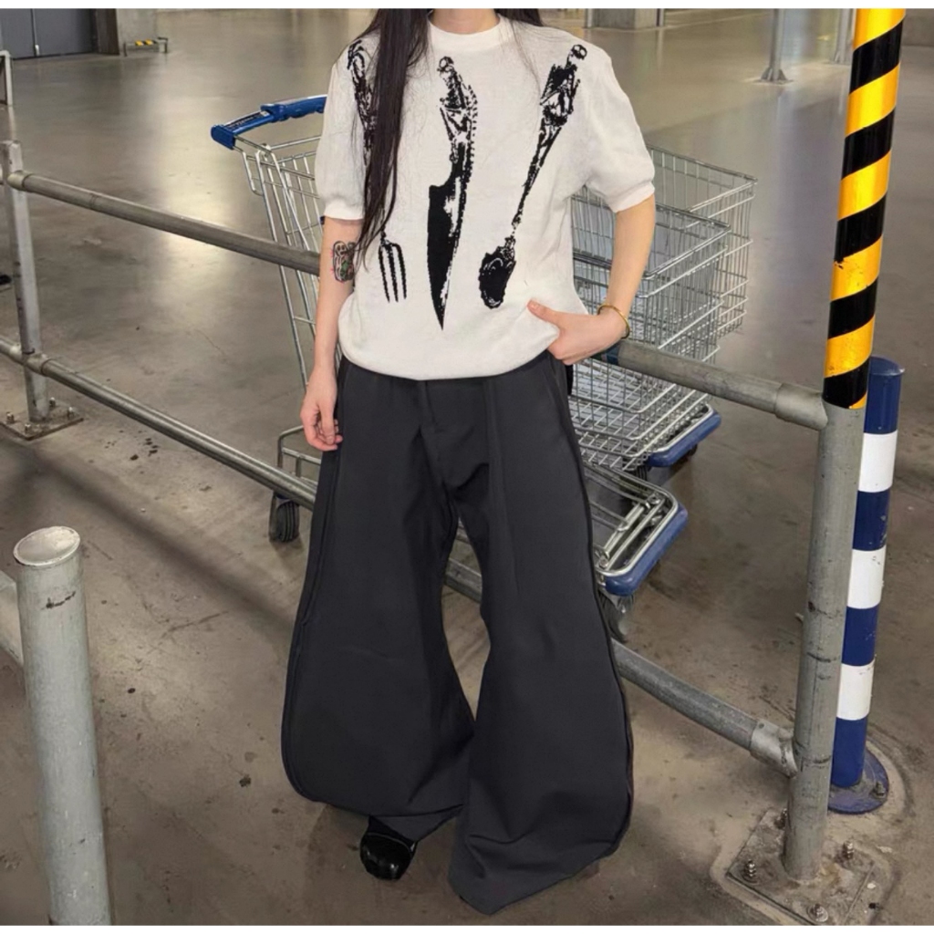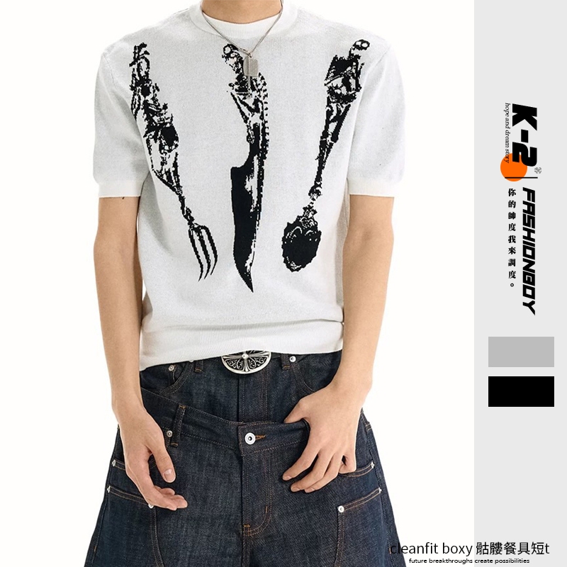 【K-2】cleanfit boxy 骷髏餐具 短袖毛衣 短版T 刀叉 湯匙 骷髏 短版毛衣 短袖 毛衣【J1652】灰色,M|灰色,L|黑色,M|黑色,LK-2 Fashionboy